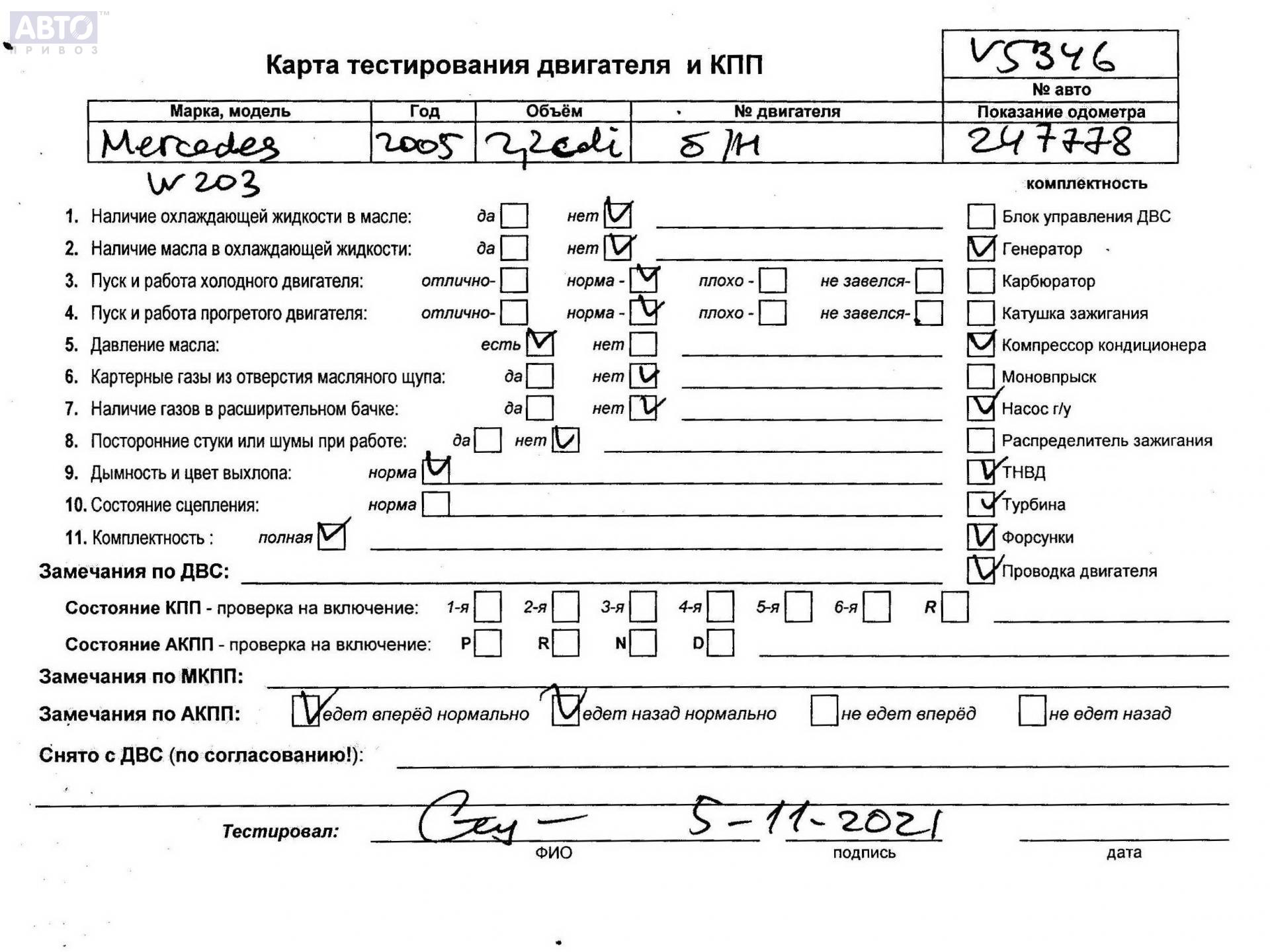 | Марка / Модель / Год: | Mercedes C-Class W203 (2000-2006) 2005 |