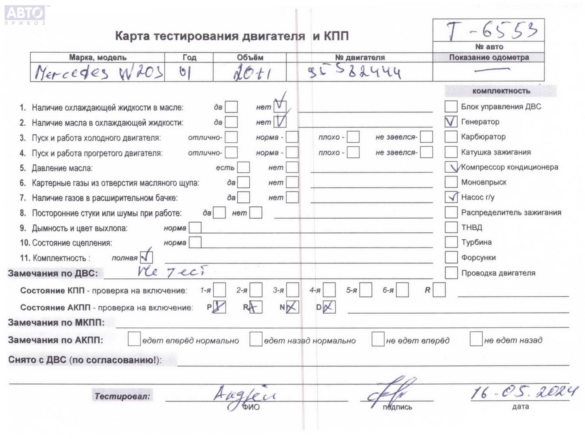 | Марка / Модель / Год: | Mercedes C-Class W203 (2000-2006) 2002 |
