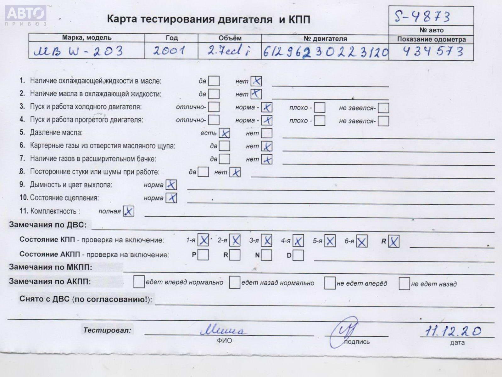 | Марка / Модель / Год: | Mercedes C-Class W203 (2000-2006) 2002 |