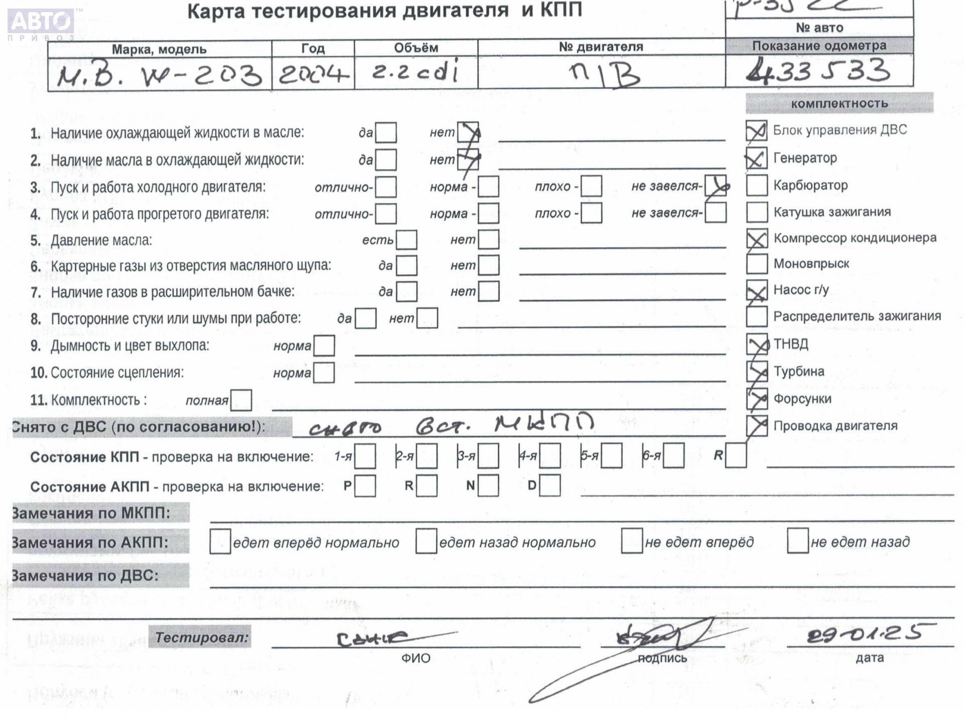 | Марка / Модель / Год: | Mercedes C-Class W203 (2000-2006) 2004 |