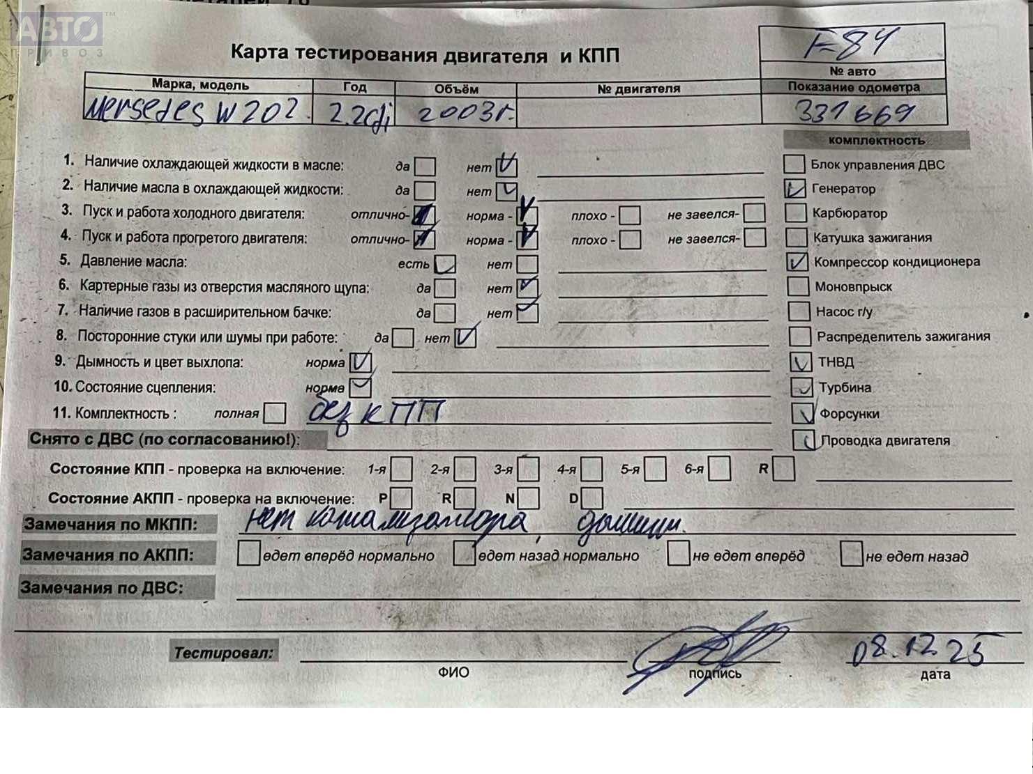 | Автомобиль / VIN: | F0084 WDB2032041F408292 |