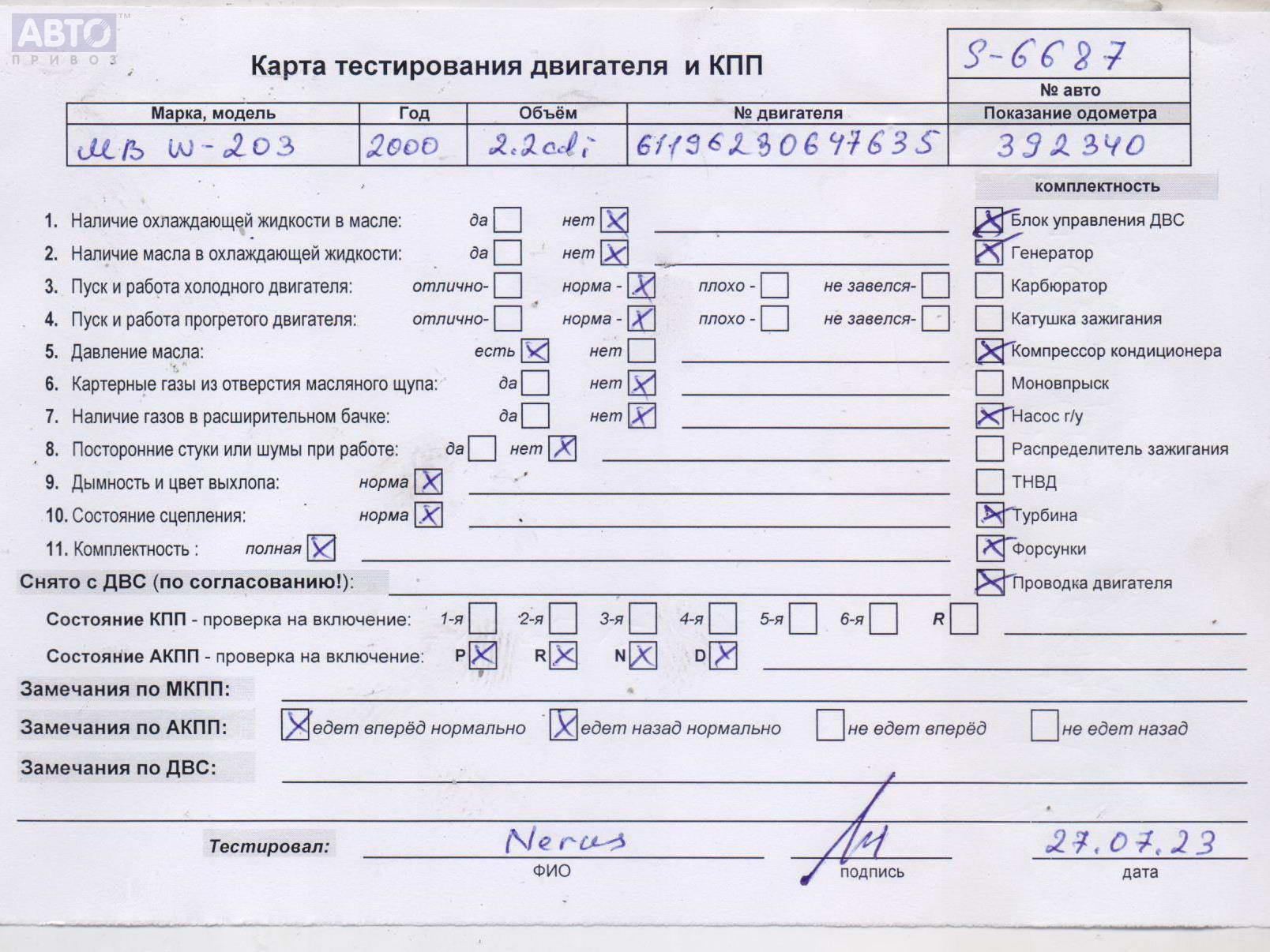 | Автомобиль / VIN: | S6687 WDB2032061F398322 |