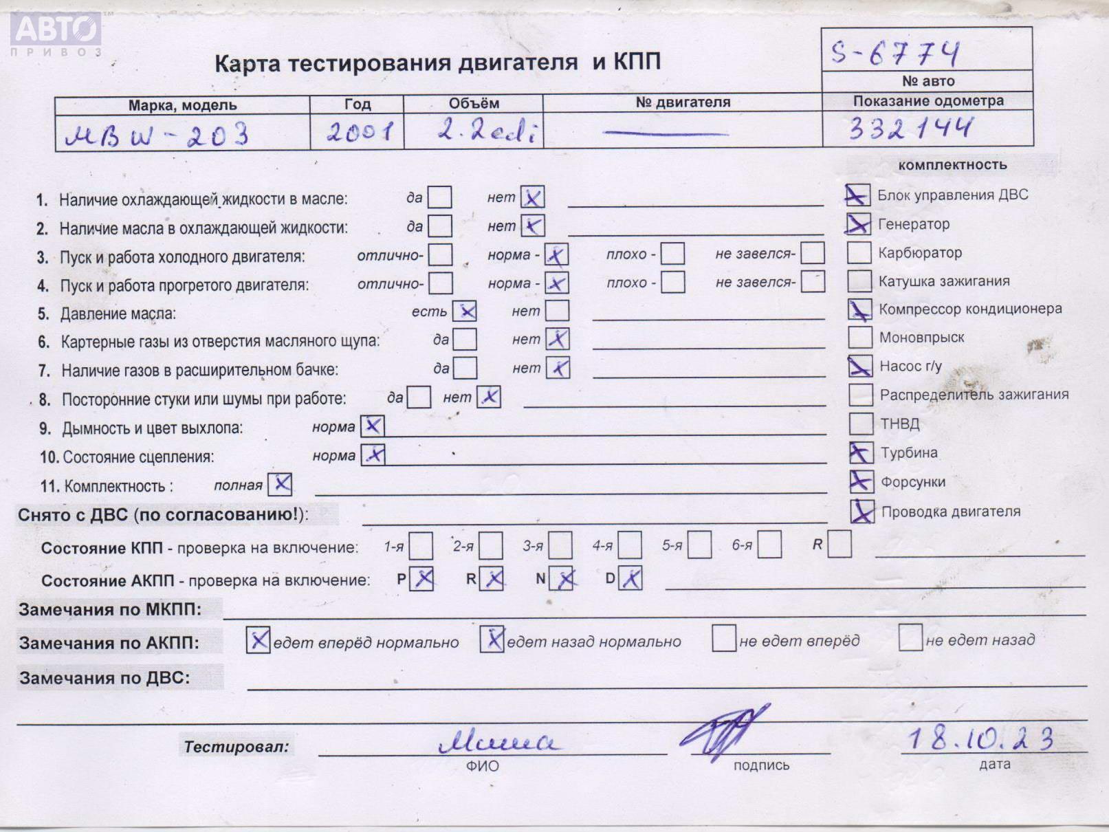| Автомобиль / VIN: | S6774 WDB2032061F246116 |