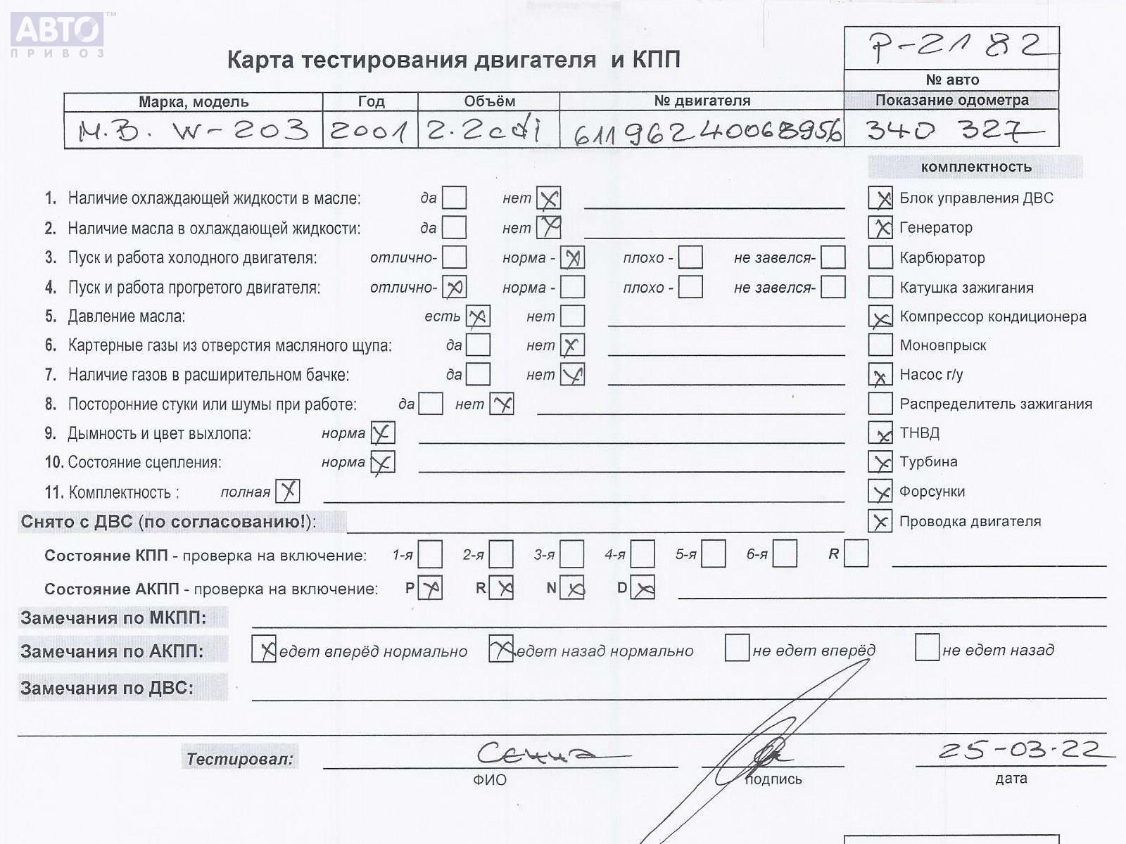 | Марка / Модель / Год: | Mercedes C-Class W203 (2000-2006) 2001 |