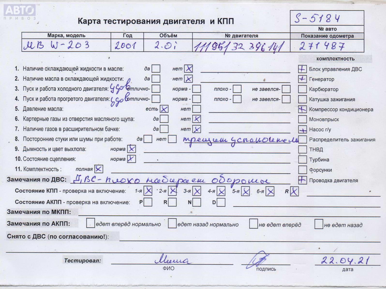 | Марка / Модель / Год: | Mercedes C-Class W203 (2000-2006) 2002 |