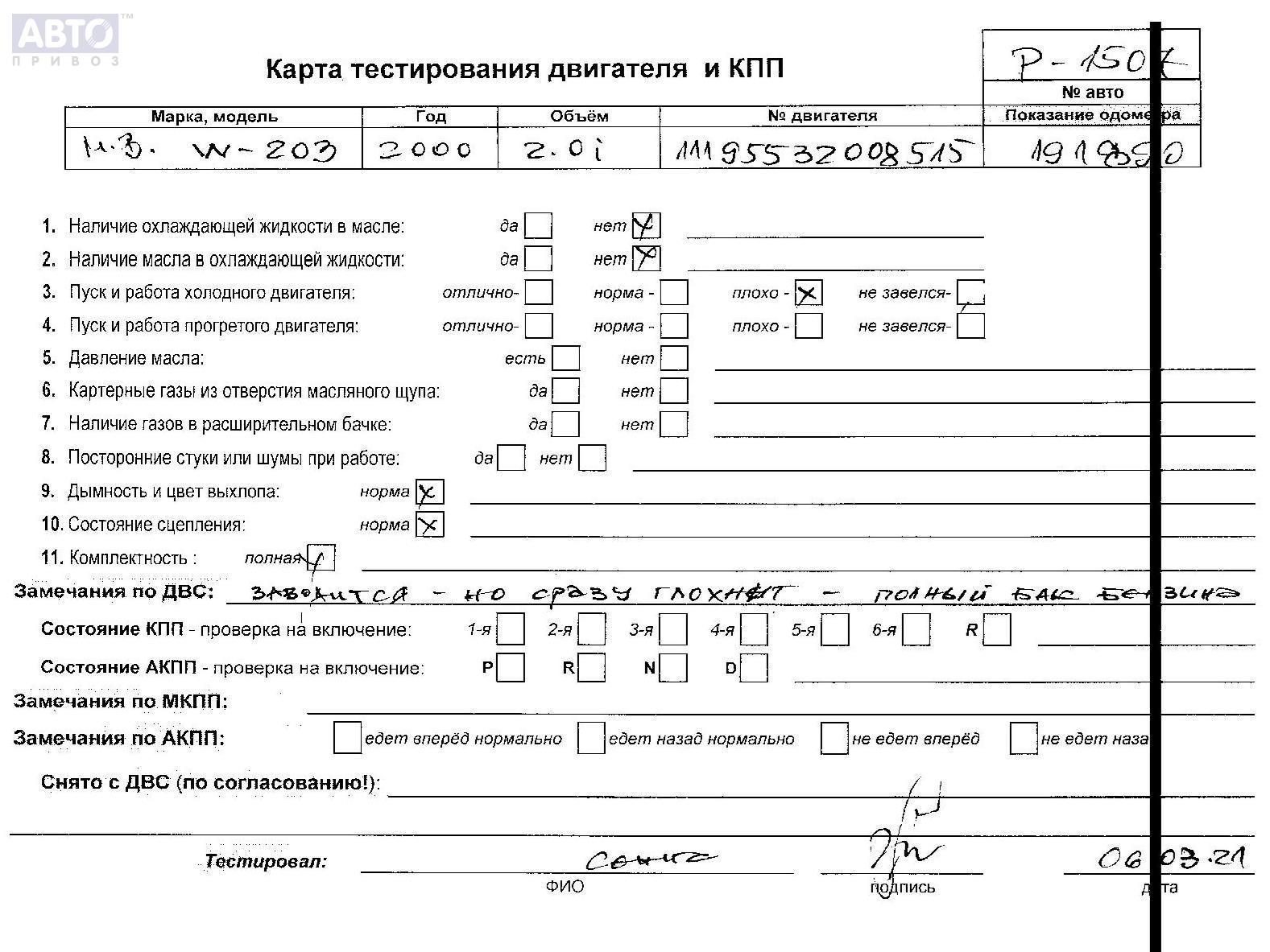| Автомобиль / VIN: | P1507 WDB2030451A033503 |