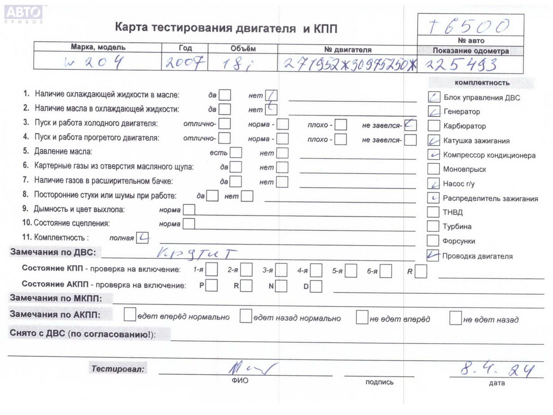 | Марка / Модель / Год: | Mercedes C-Class W204 (2007-2015) 2007 |
