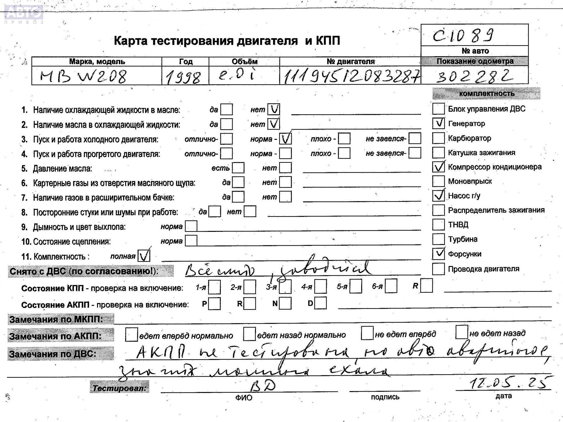 | Автомобиль / VIN: | C1089 WDB2083351F093332 |