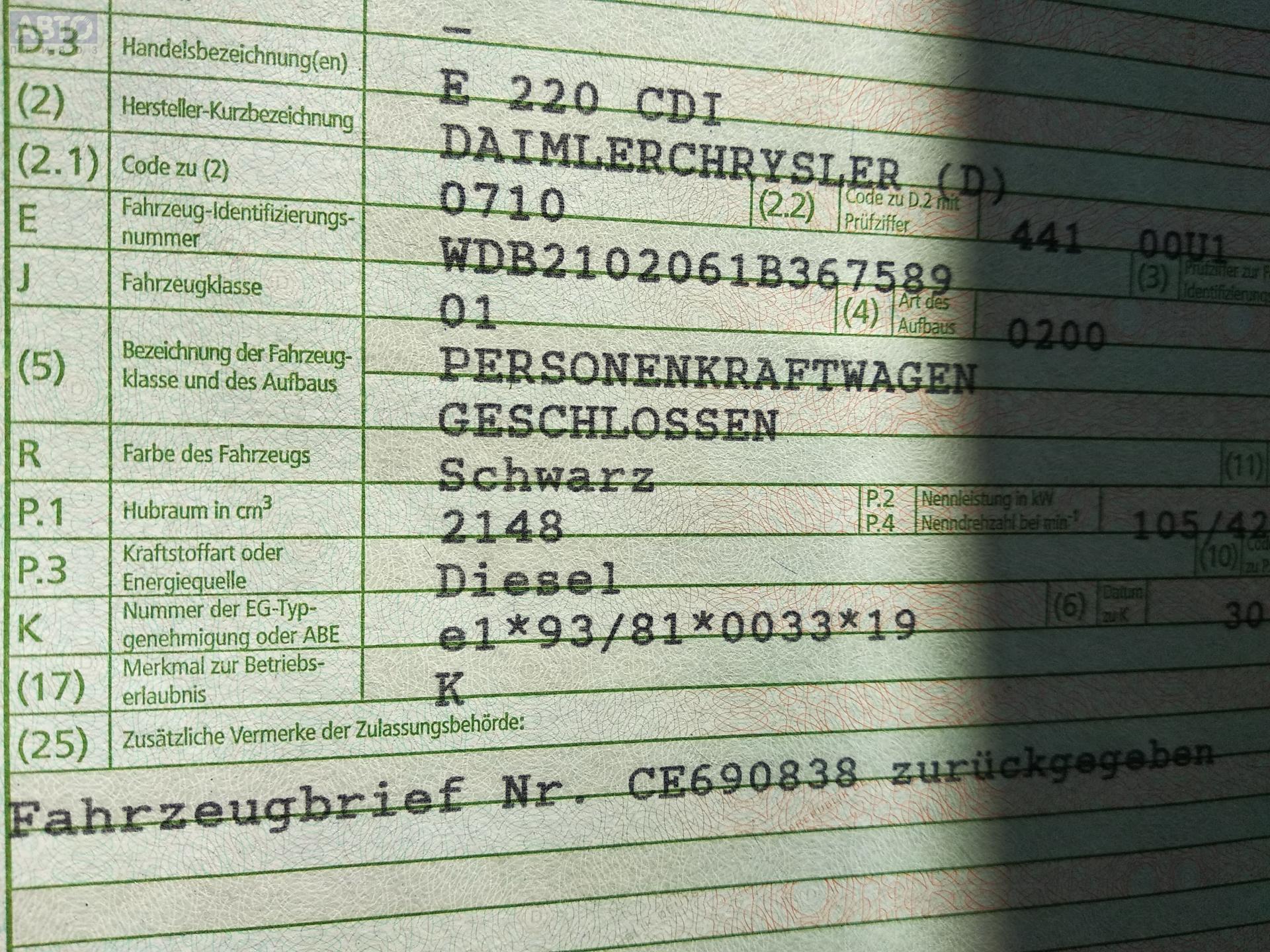 | Автомобиль / VIN: | P1646 WDB2102061B367589 |