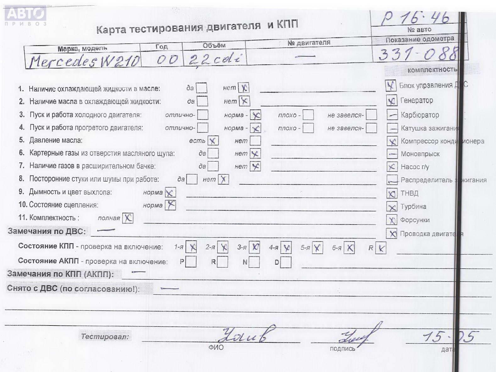 | Марка / Модель / Год: | Mercedes E-Class W210 (1995-2002) 2001 |
