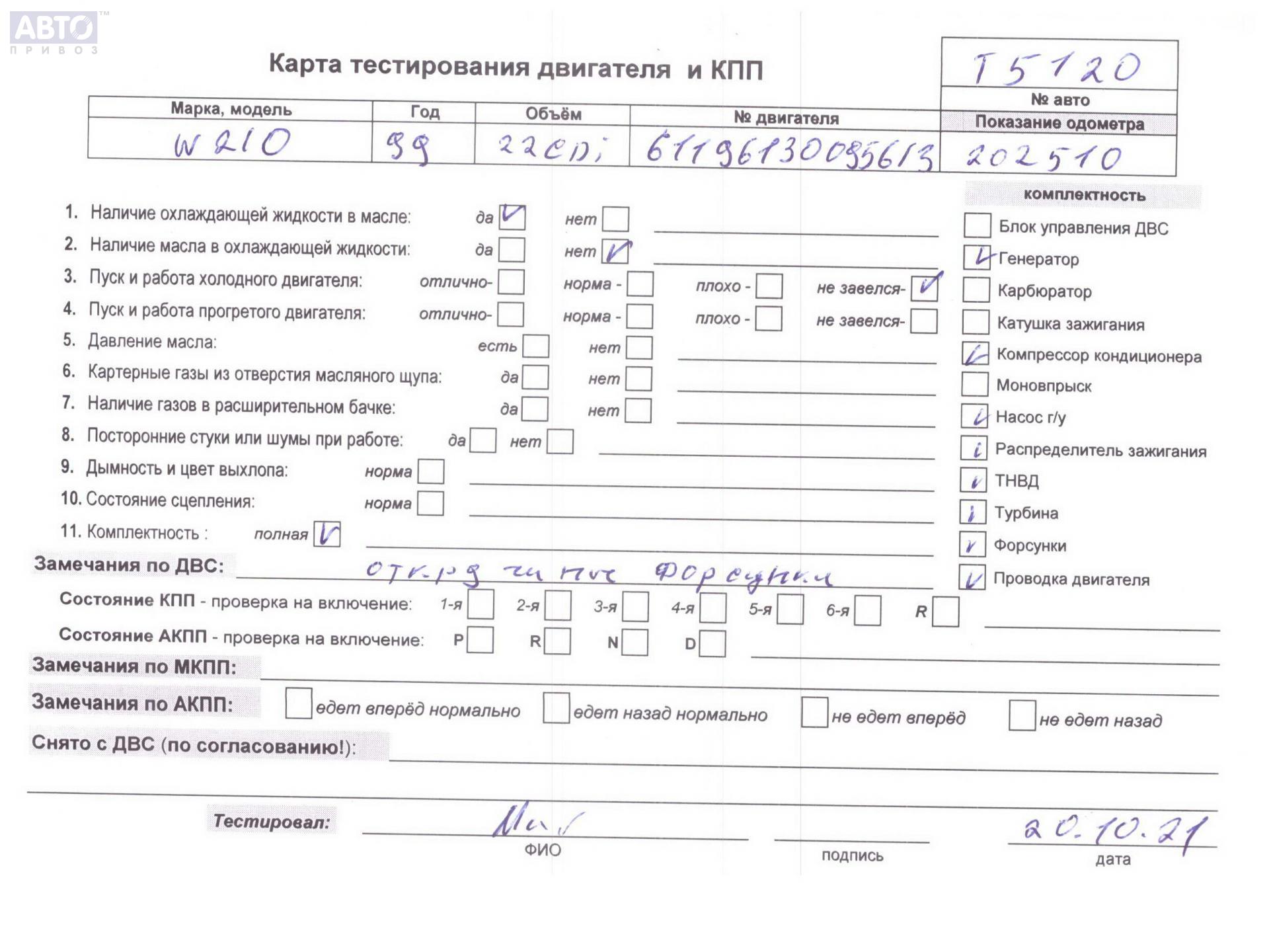 | Марка / Модель / Год: | Mercedes E-Class W210 (1995-2002) 1999 |