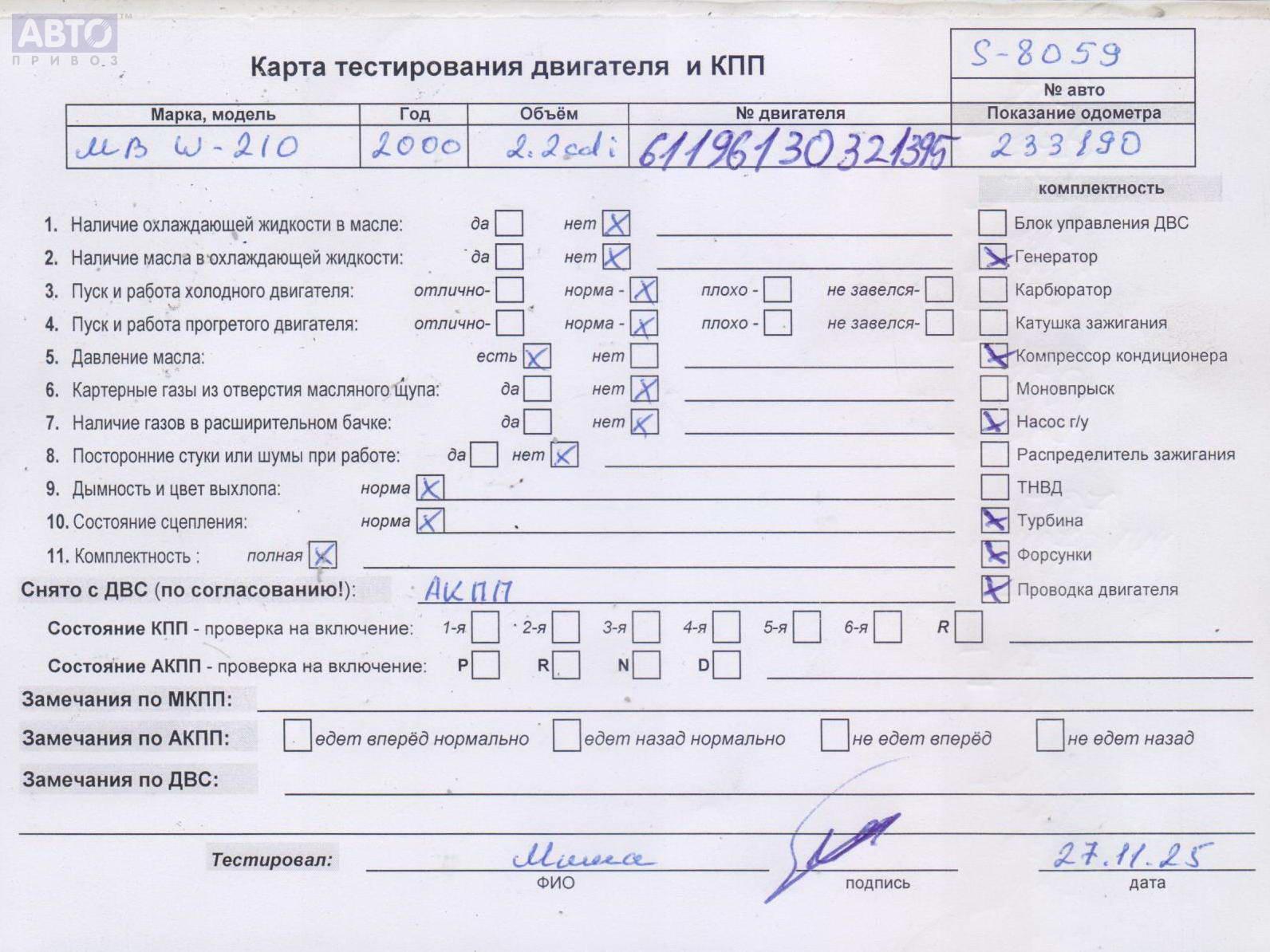 | Автомобиль / VIN: | S8059 WDB2100061B292349 |