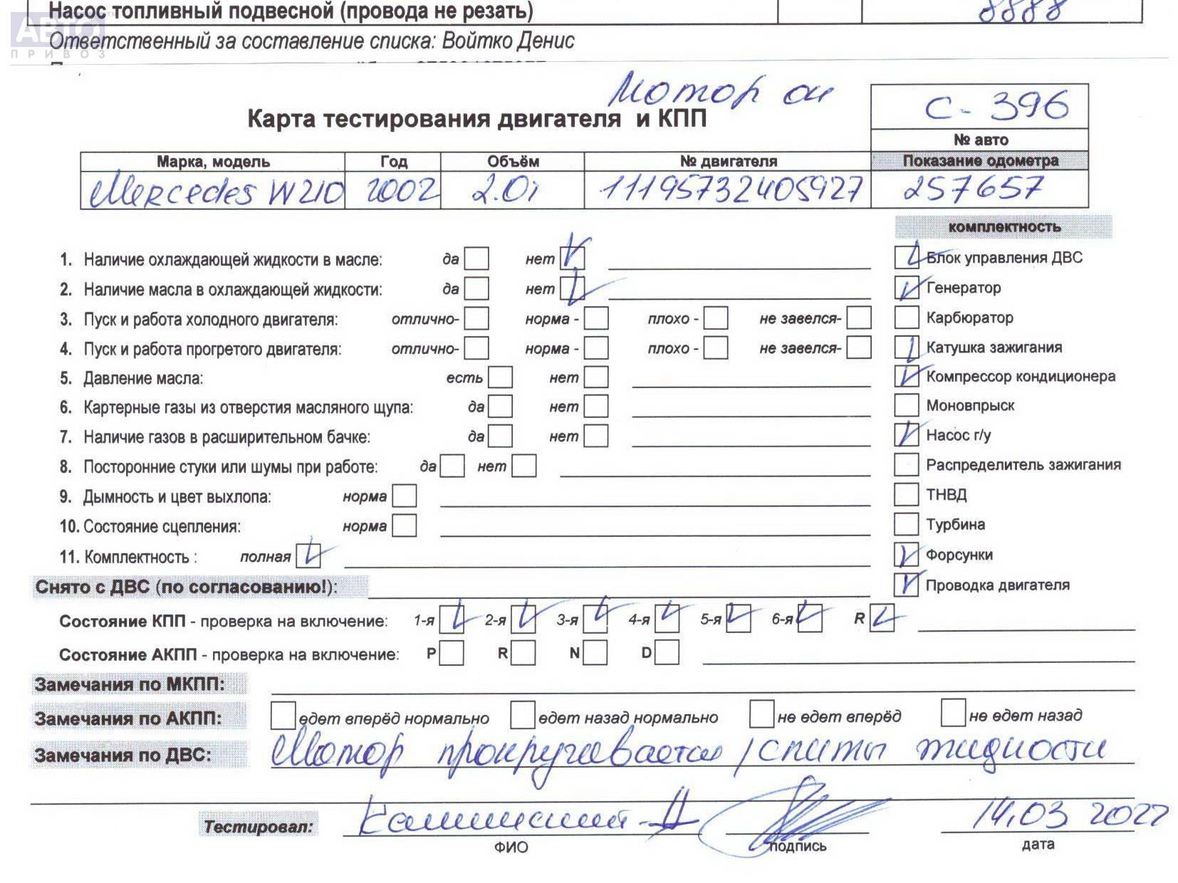 | Автомобиль / VIN: | C0396 WDB2102481X076625 |