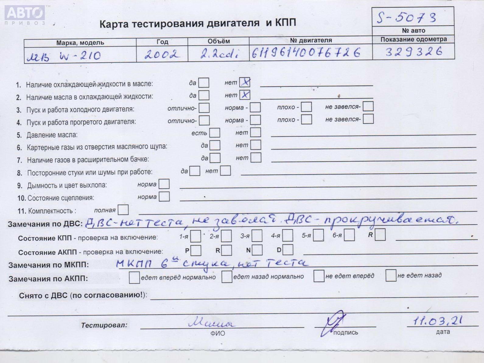 | Марка / Модель / Год: | Mercedes E-Class W210 (1995-2002) 2002 |