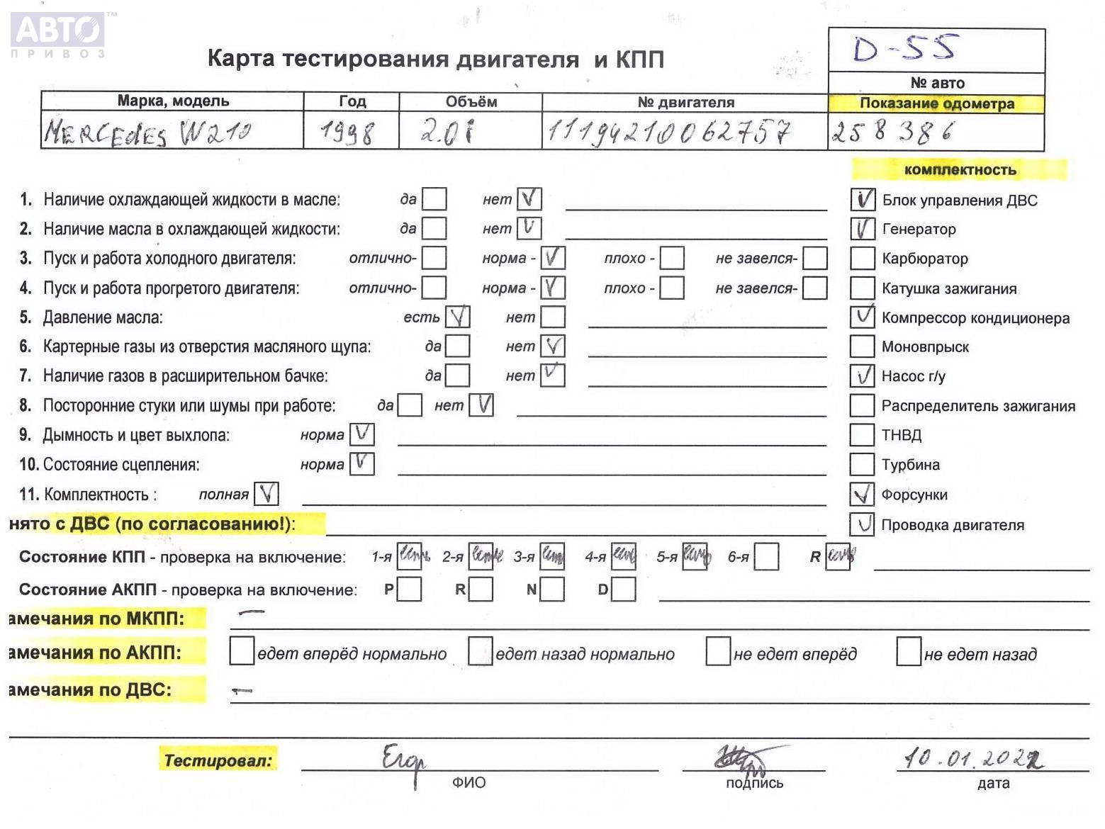 | Марка / Модель / Год: | Mercedes E-Class W210 (1995-2002) 1999 |