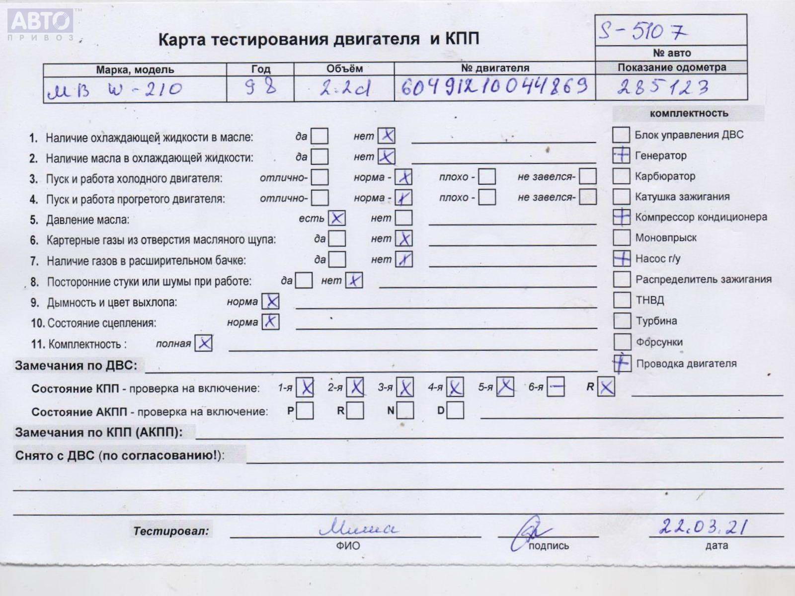 | Автомобиль / VIN: | S5107 WDB2100041A622989 |