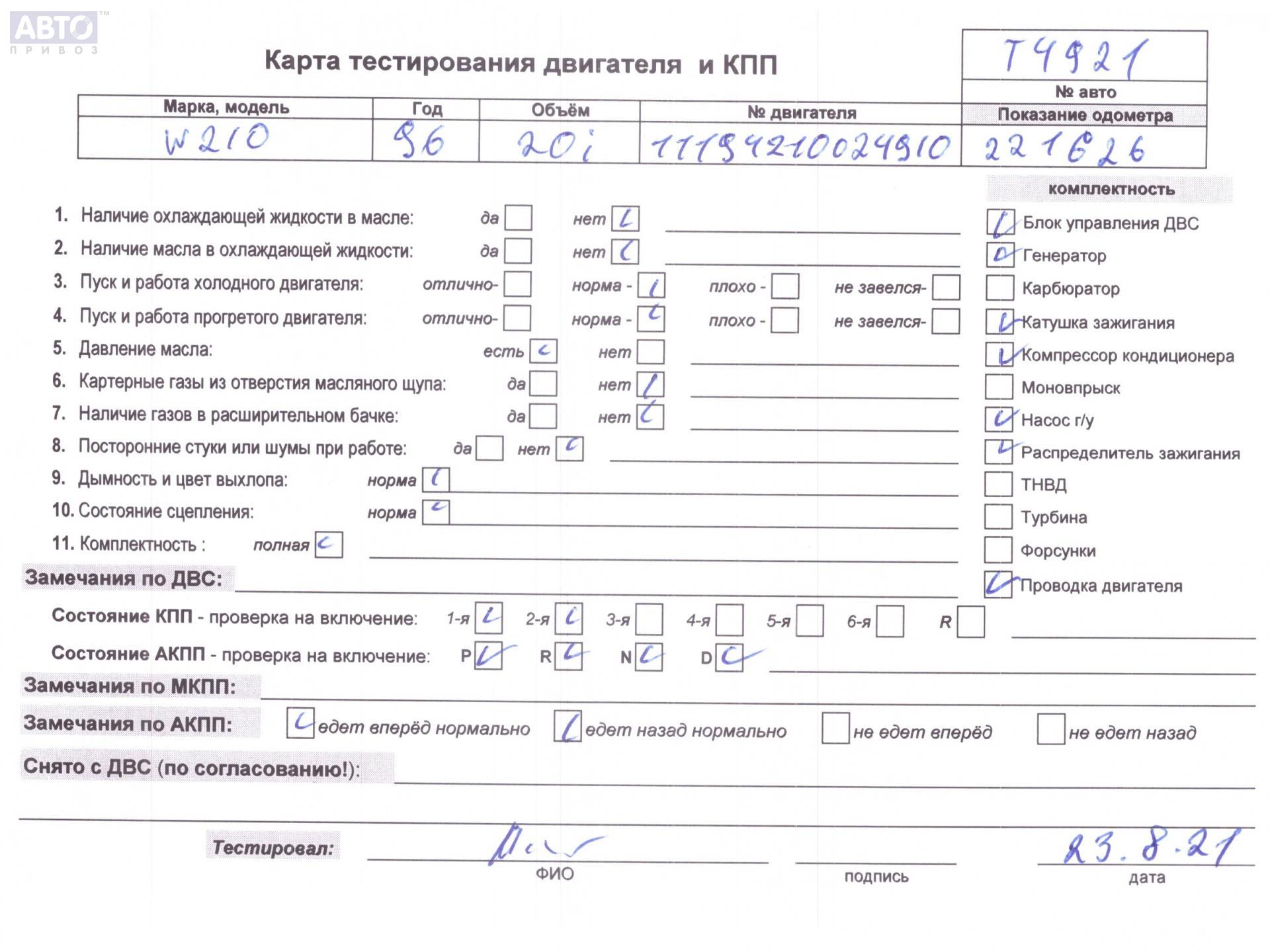 | Автомобиль / VIN: | T4921 WDB2100351A234324 |