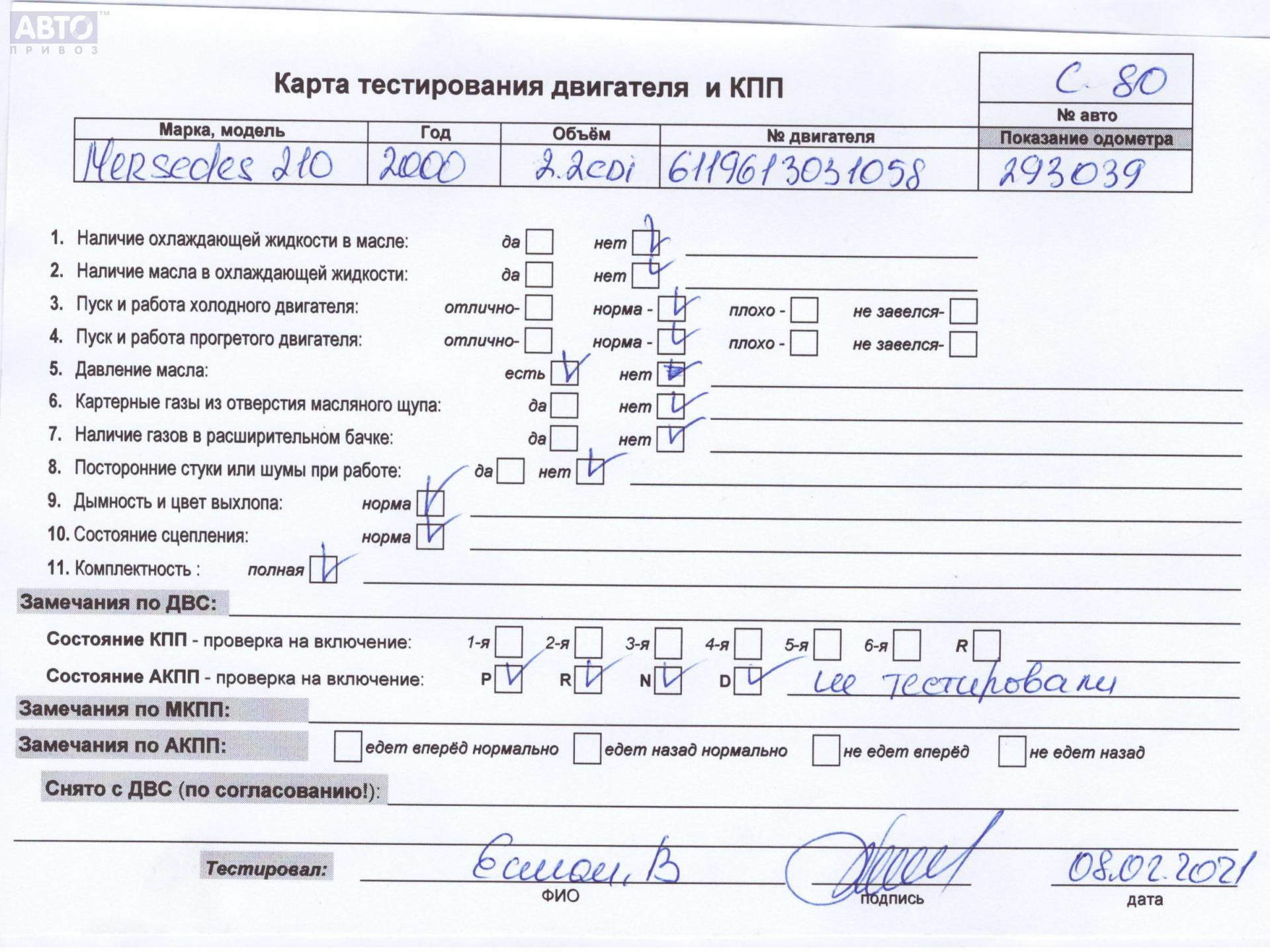 | Автомобиль / VIN: | C0080 WDB2100061B307668 |