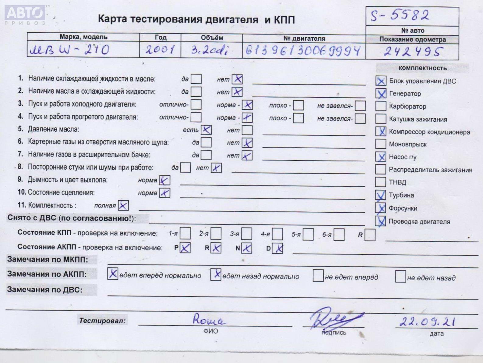 | Марка / Модель / Год: | Mercedes E-Class W210 (1995-2002) 2001 |