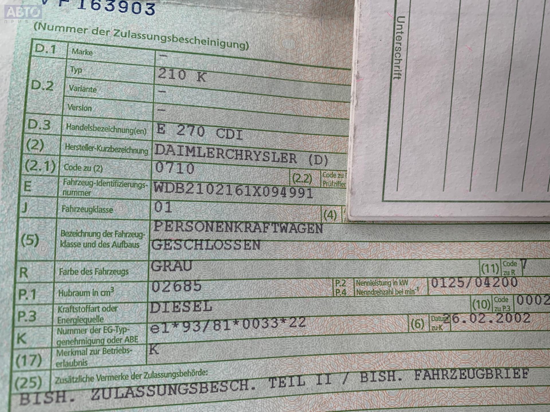 | Марка / Модель / Год: | Mercedes E-Class W210 (1995-2002) 2002 |