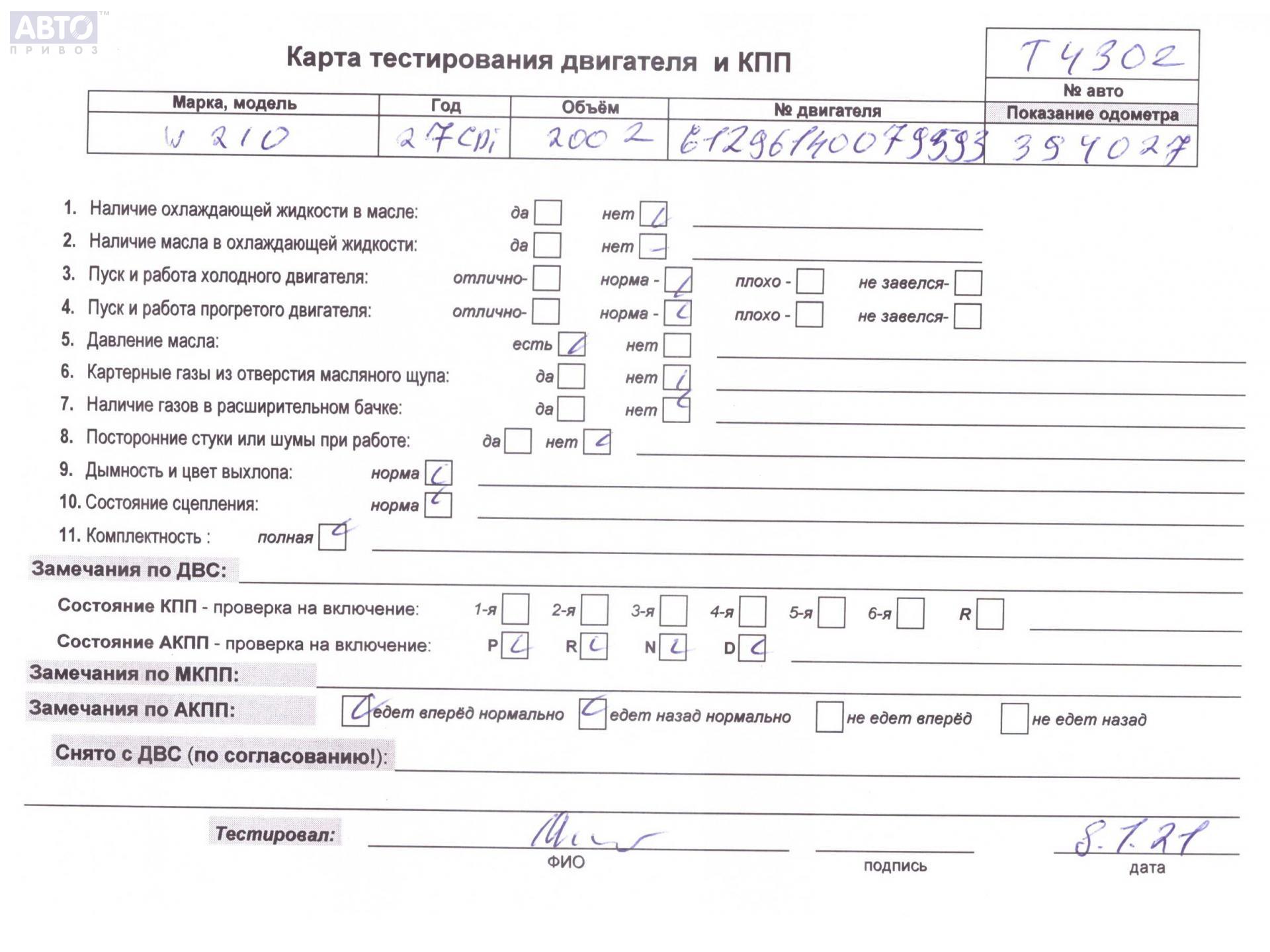 | Автомобиль / VIN: | T4302 WDB2102161X094991 |