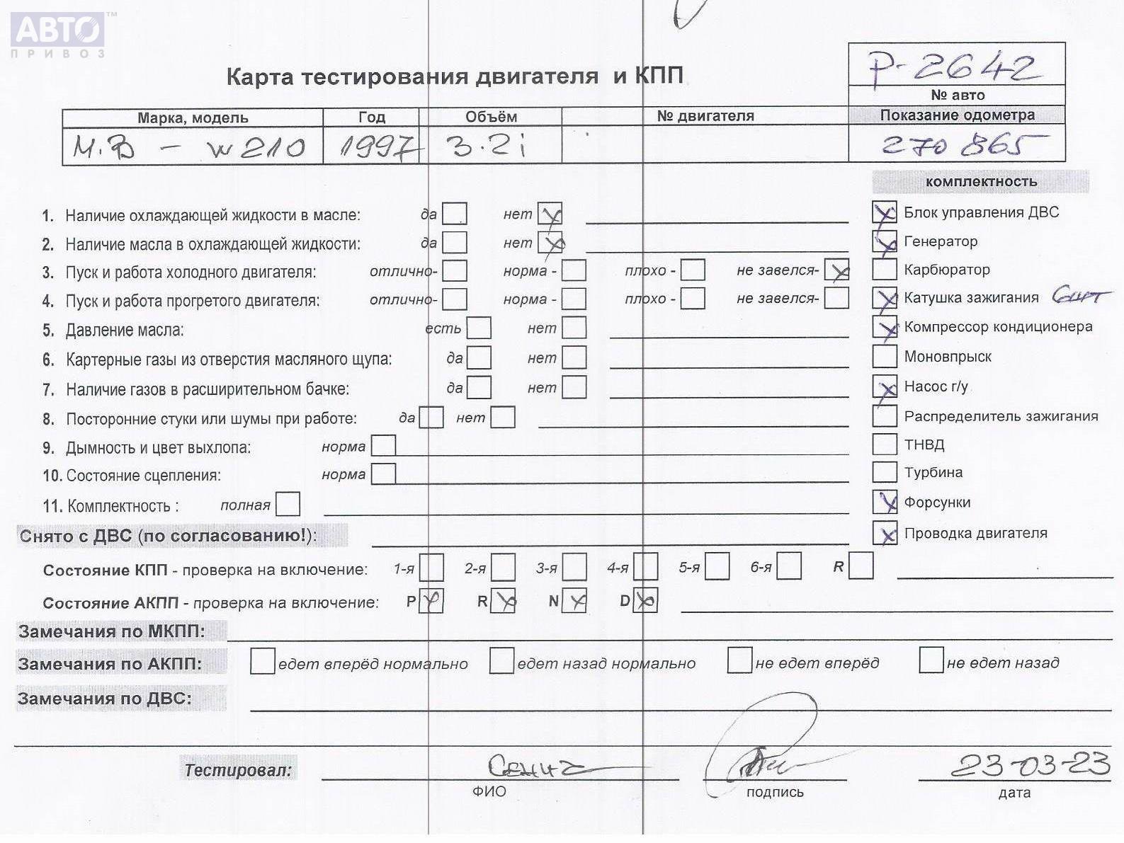 | Автомобиль / VIN: | P2642 WDB2102651A493382 |