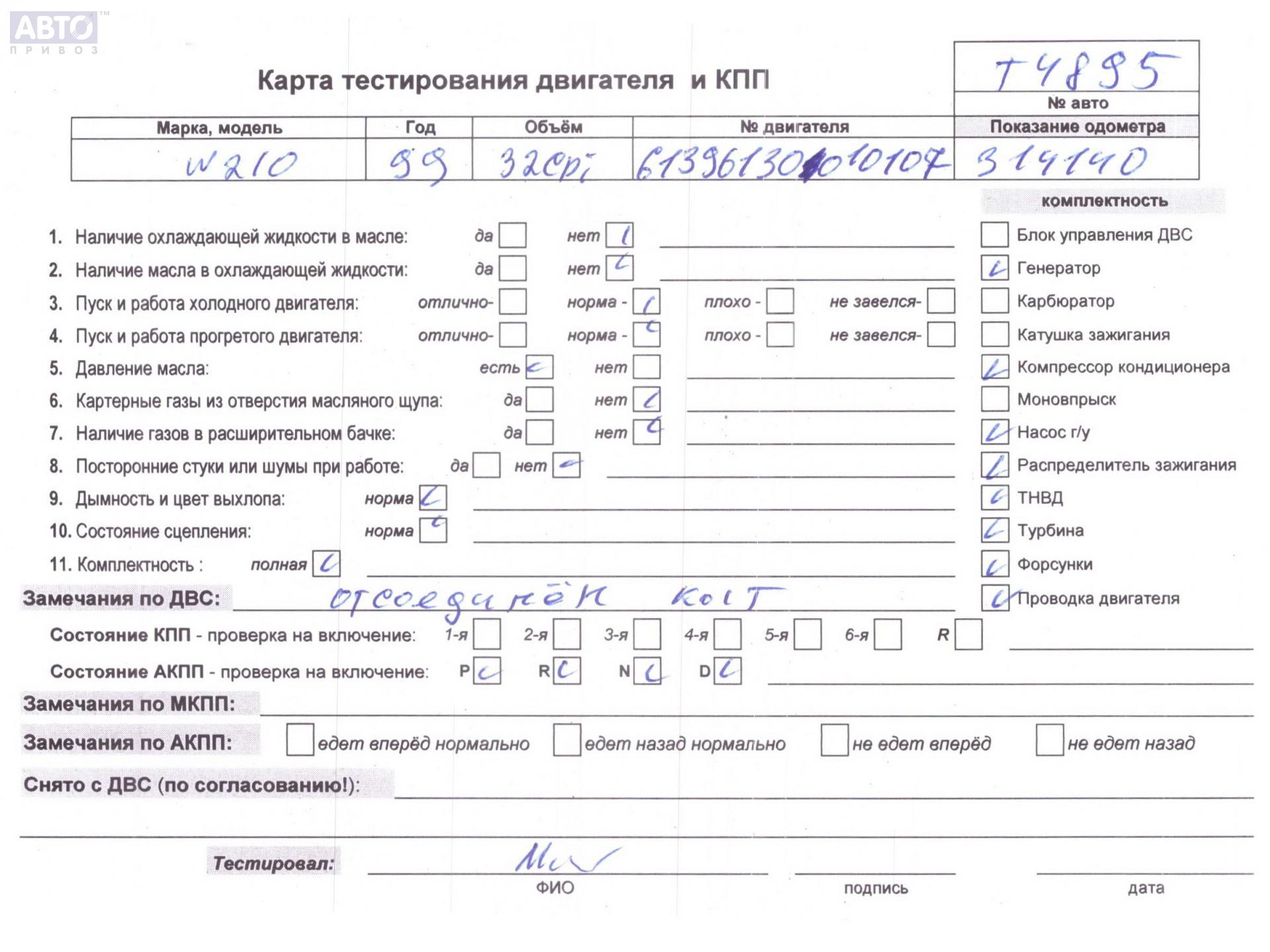 | Марка / Модель / Год: | Mercedes E-Class W210 (1995-2002) 2000 |