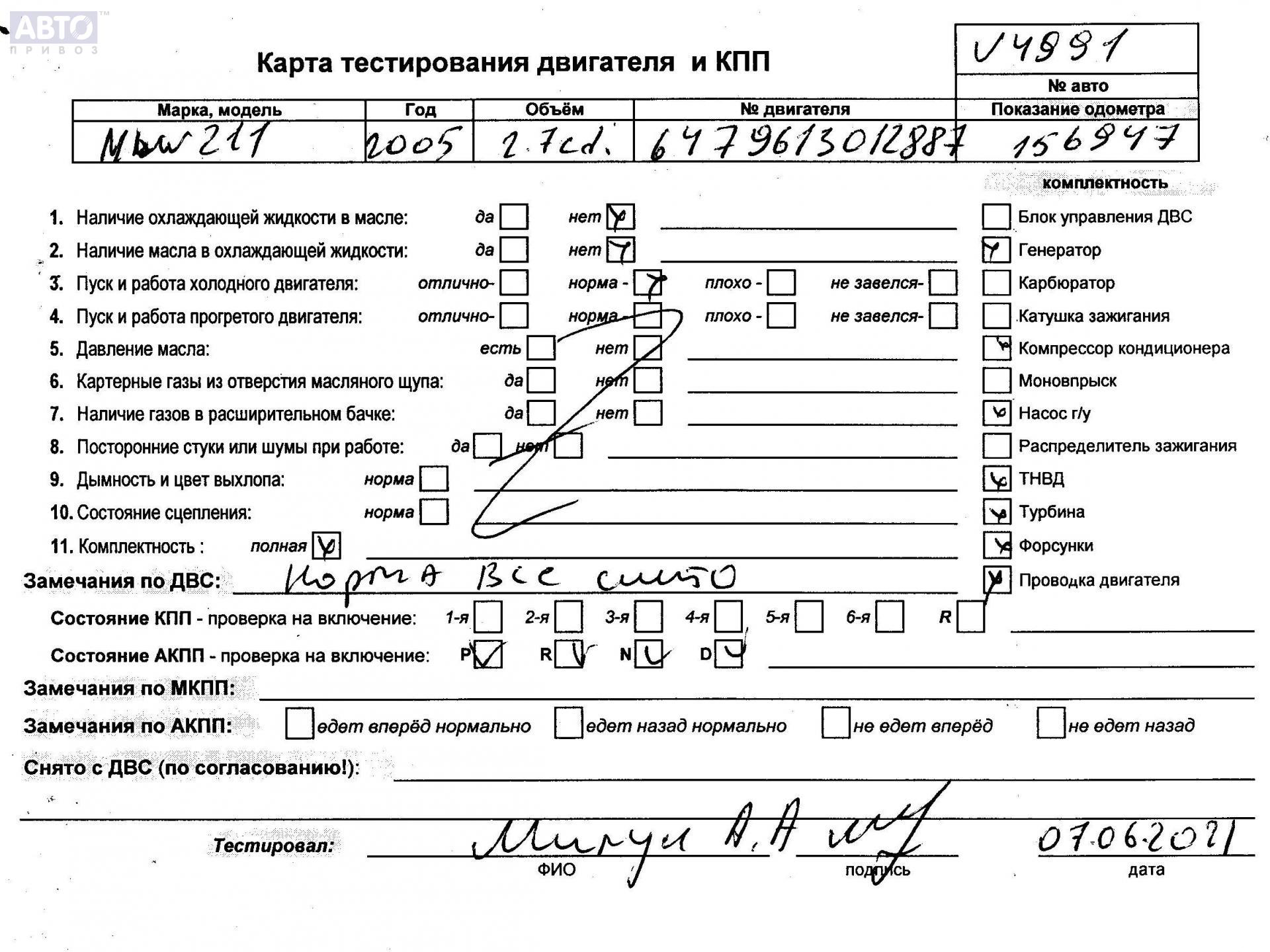 | Марка / Модель / Год: | Mercedes E-Class W211 (2002-2009) 2005 |