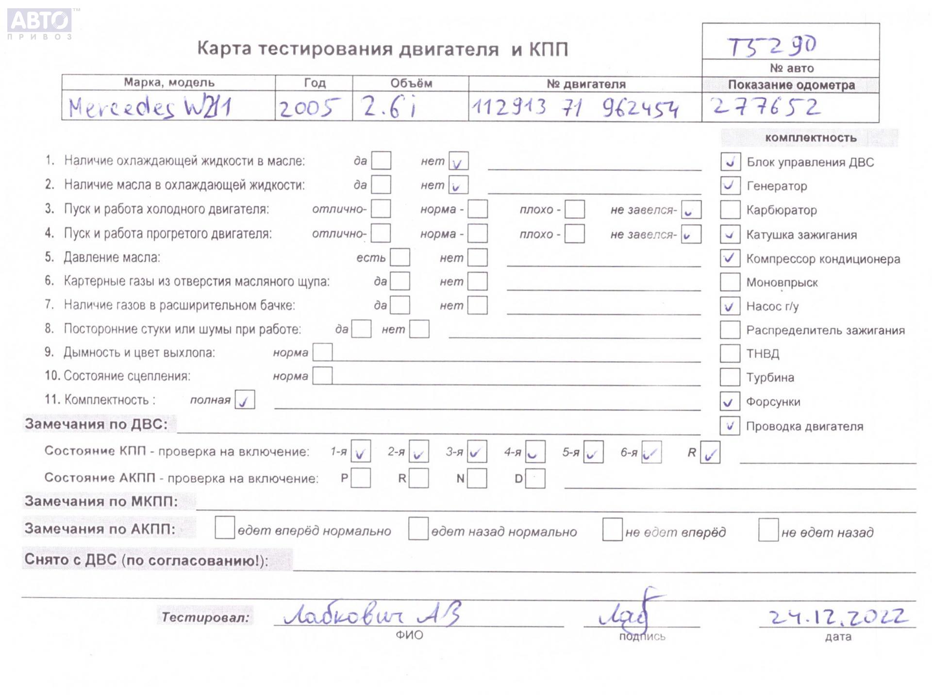 | Марка / Модель / Год: | Mercedes E-Class W211 (2002-2009) 2005 |