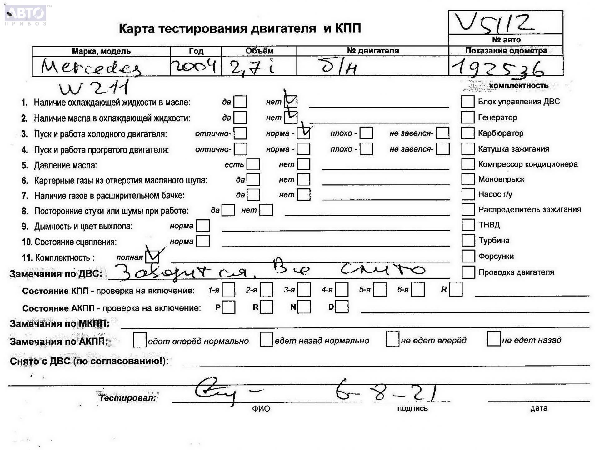 | Марка / Модель / Год: | Mercedes E-Class W211 (2002-2009) 2004 |