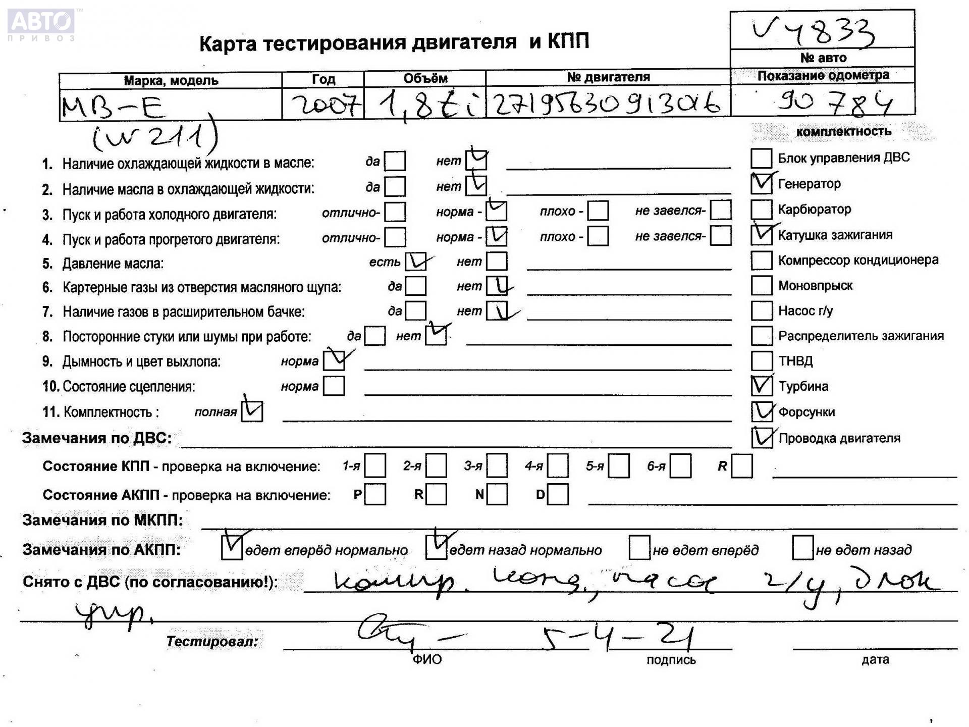 | Марка / Модель / Год: | Mercedes E-Class W211 (2002-2009) 2007 |