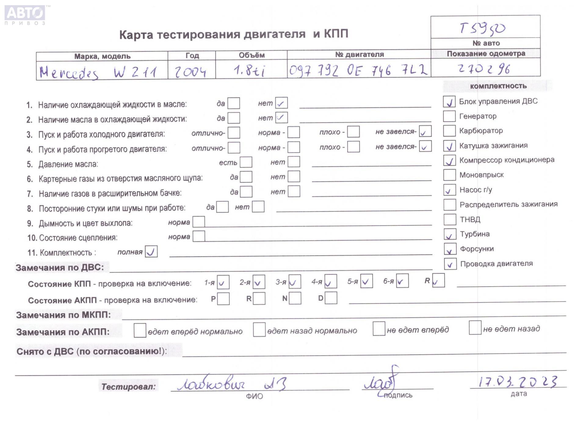| Марка / Модель / Год: | Mercedes E-Class W211 (2002-2009) 2002 |