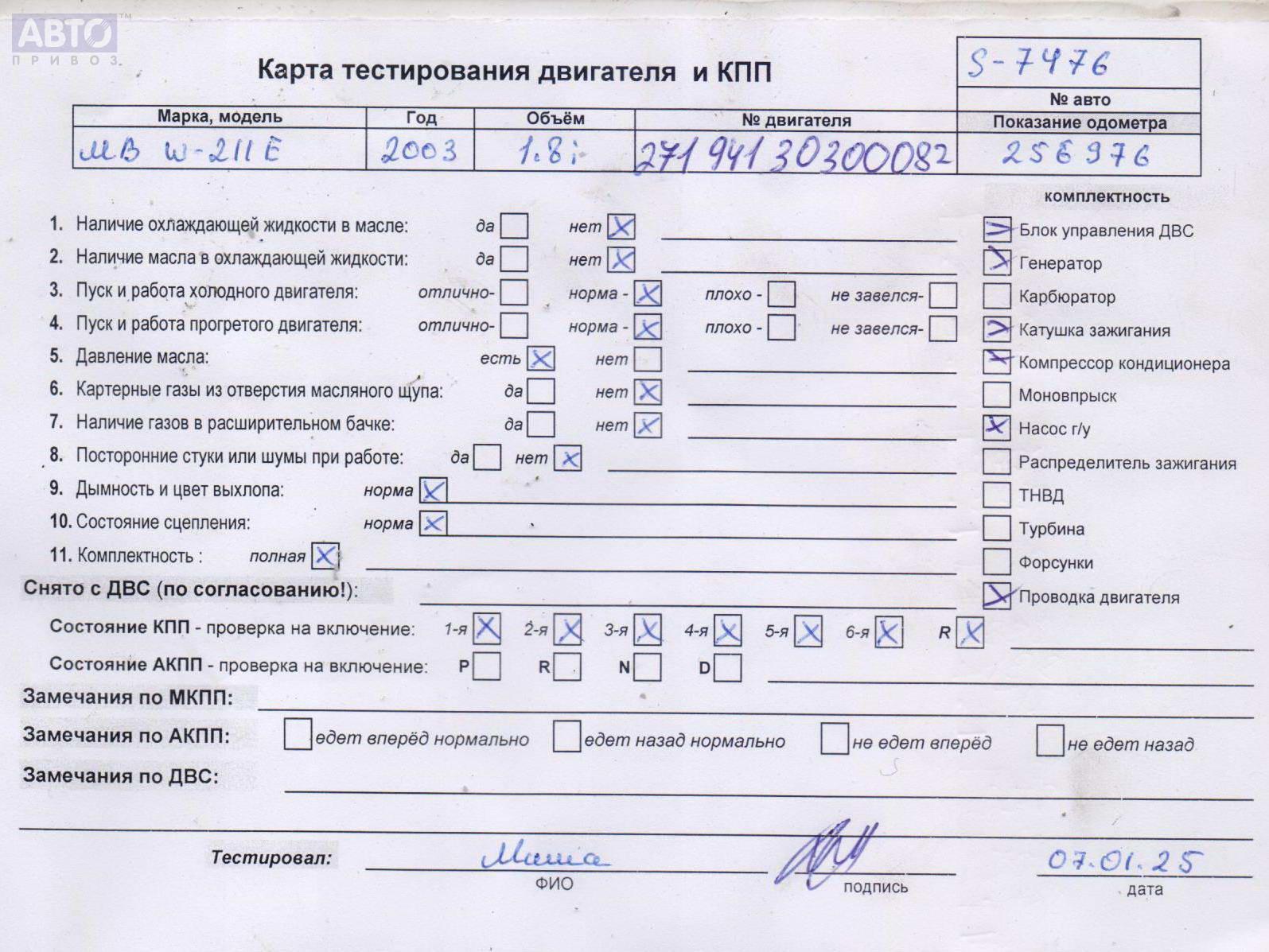 | Автомобиль / VIN: | S7476 WDB2112421A484845 |