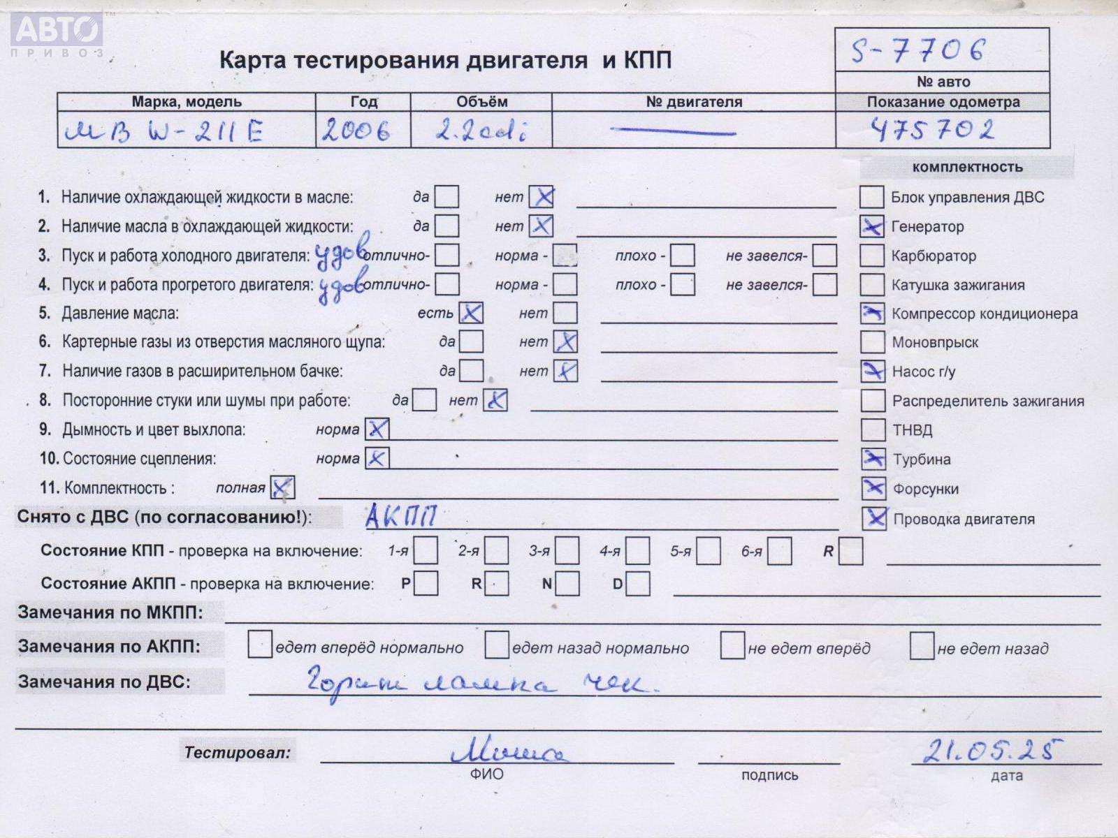 | Марка / Модель / Год: | Mercedes E-Class W211 (2002-2009) 2006 |