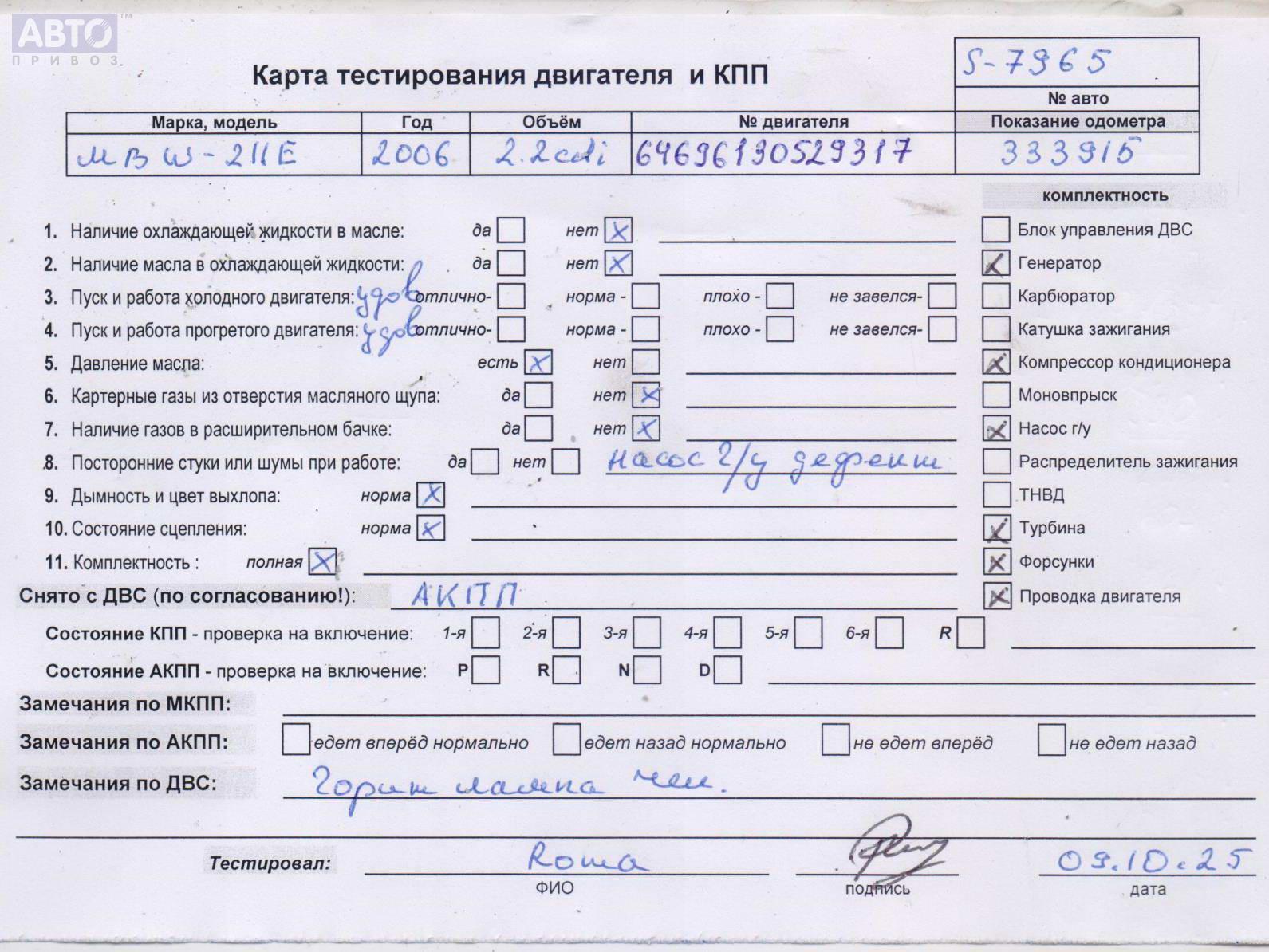 | Автомобиль / VIN: | S7965 WDB2110061A962026 |