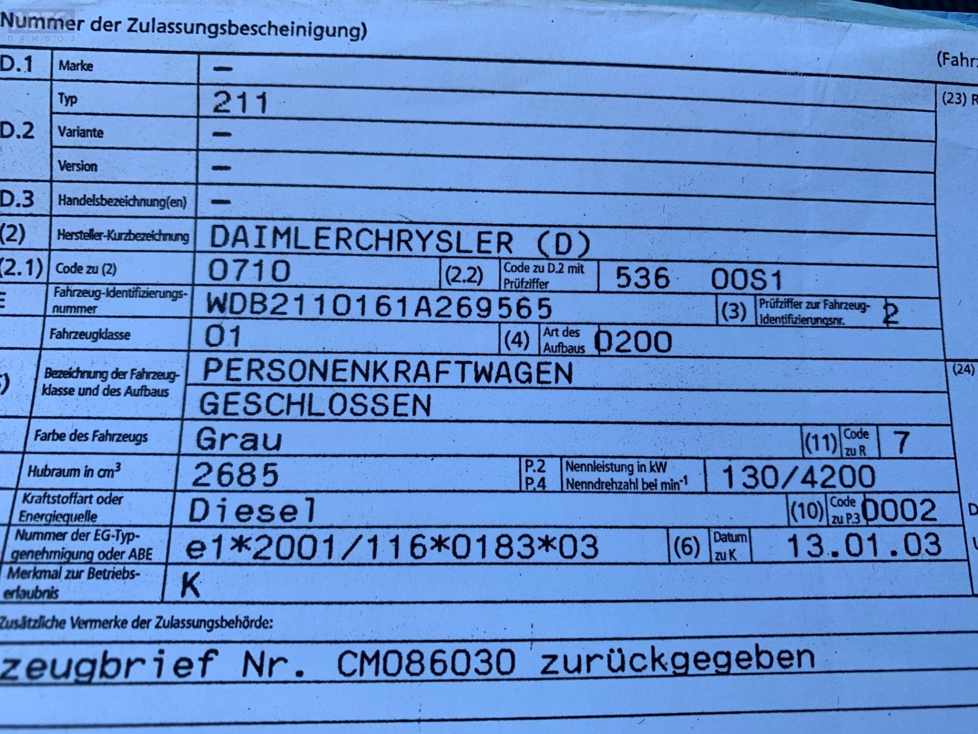 | Марка / Модель / Год: | Mercedes E-Class W211 (2002-2009) 2003 |