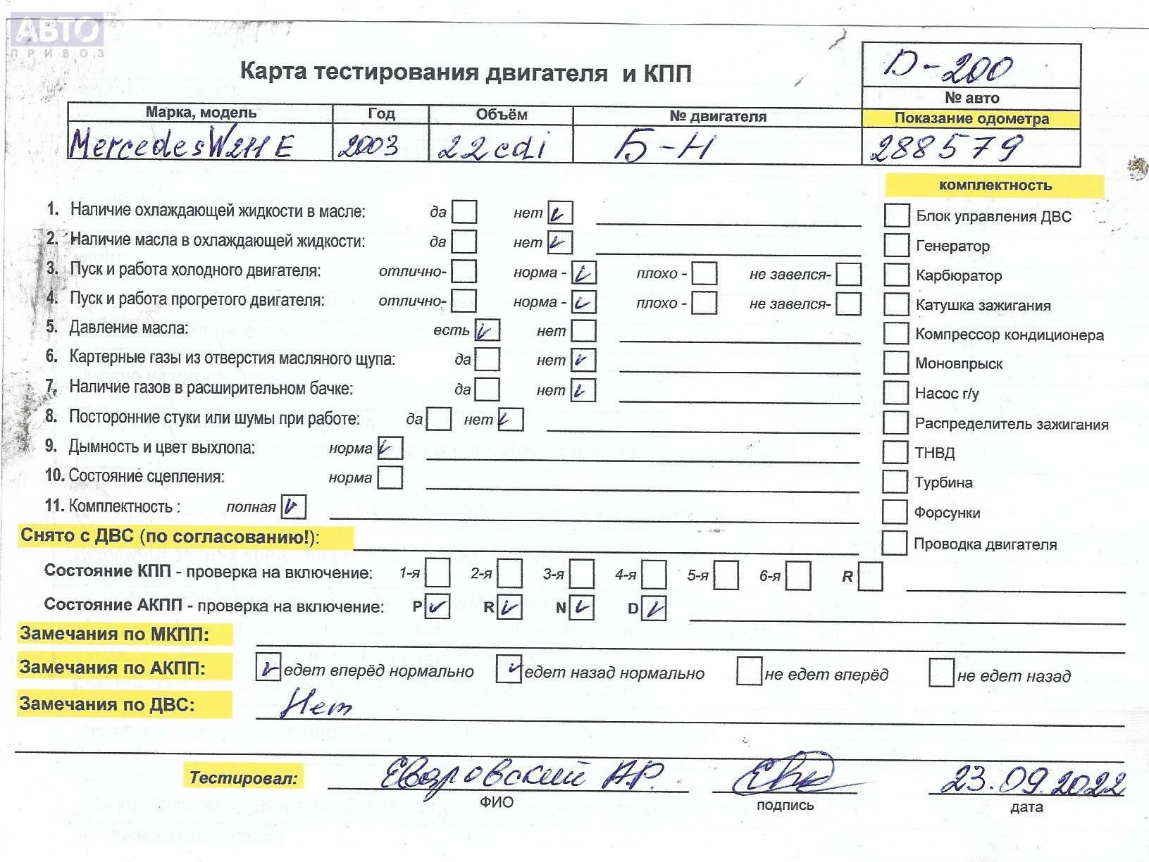 | Марка / Модель / Год: | Mercedes E-Class W211 (2002-2009) 2003 |