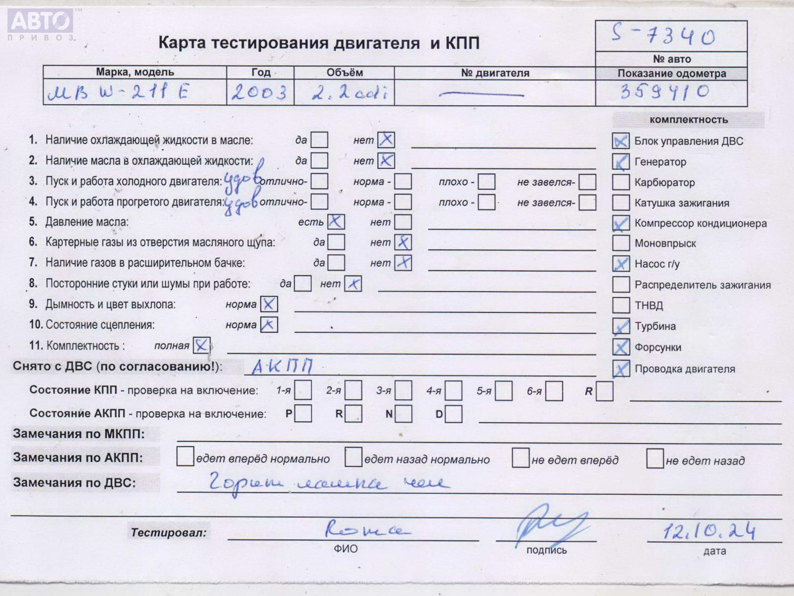 | Автомобиль / VIN: | S7340 WDB2112061A330231 |