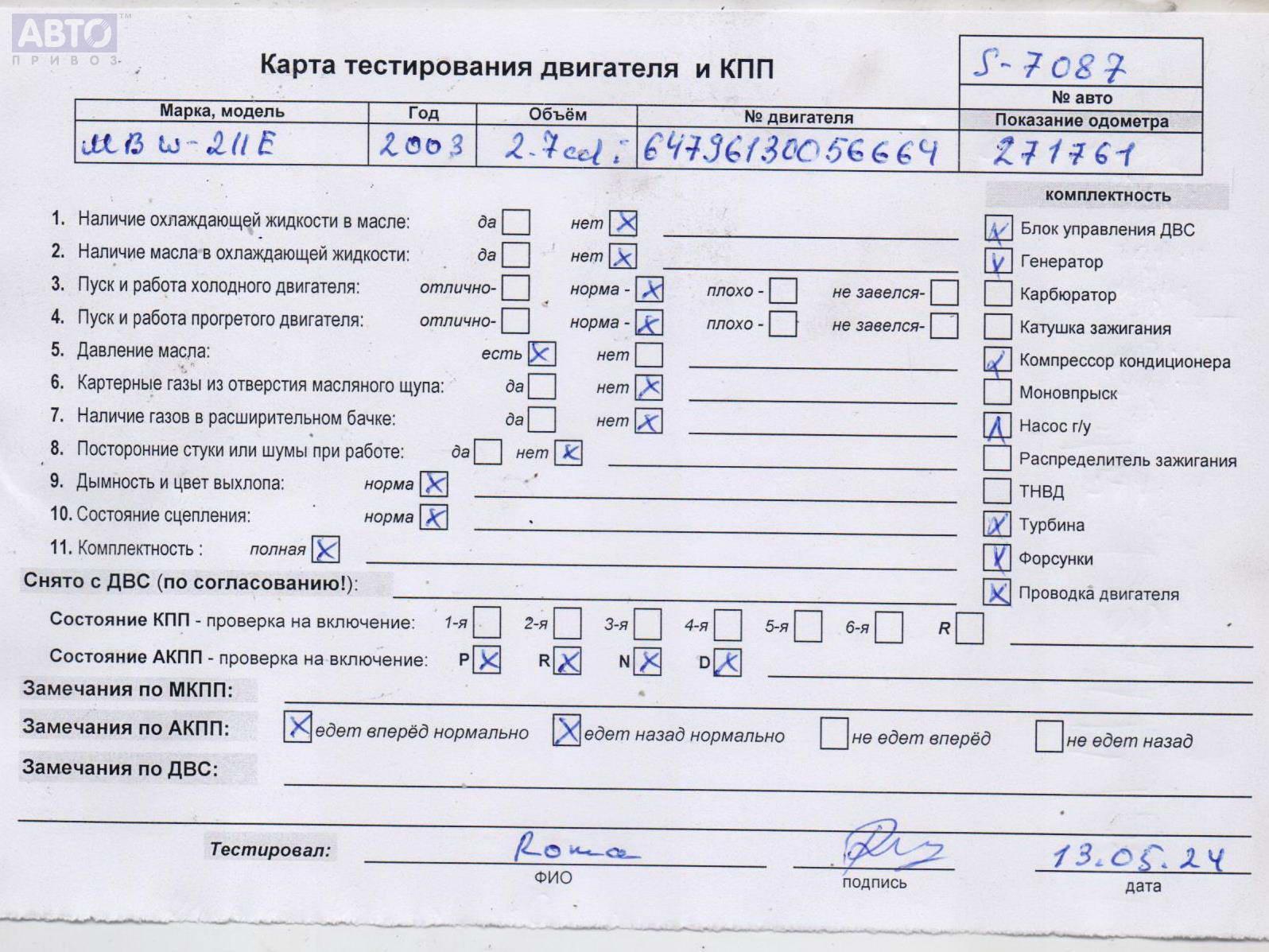| Марка / Модель / Год: | Mercedes E-Class W211 (2002-2009) 2003 |