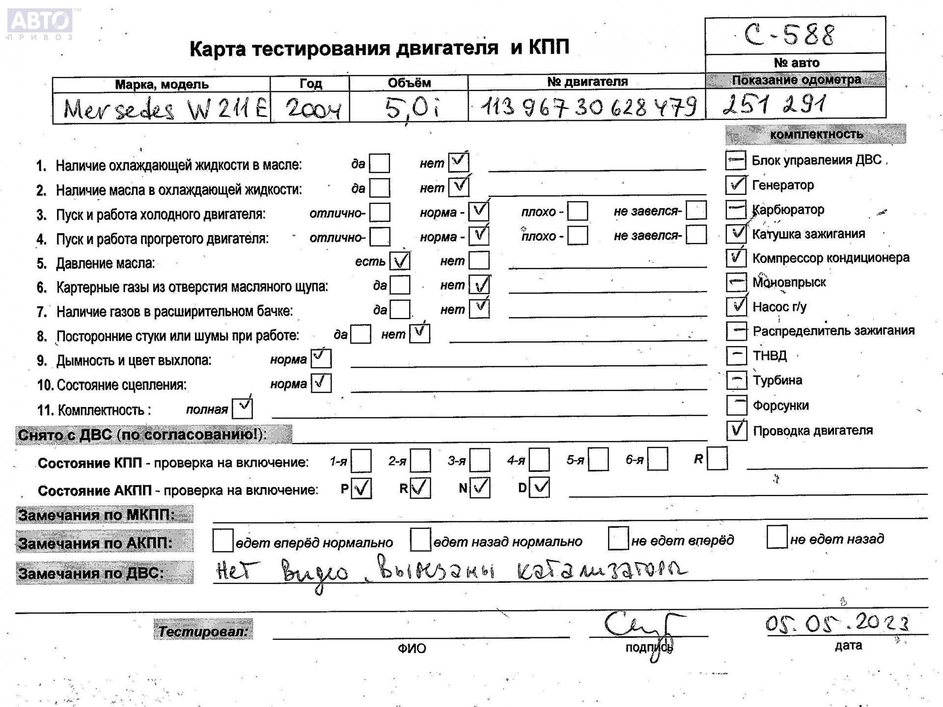 | Марка / Модель / Год: | Mercedes E-Class W211 (2002-2009) 2004 |