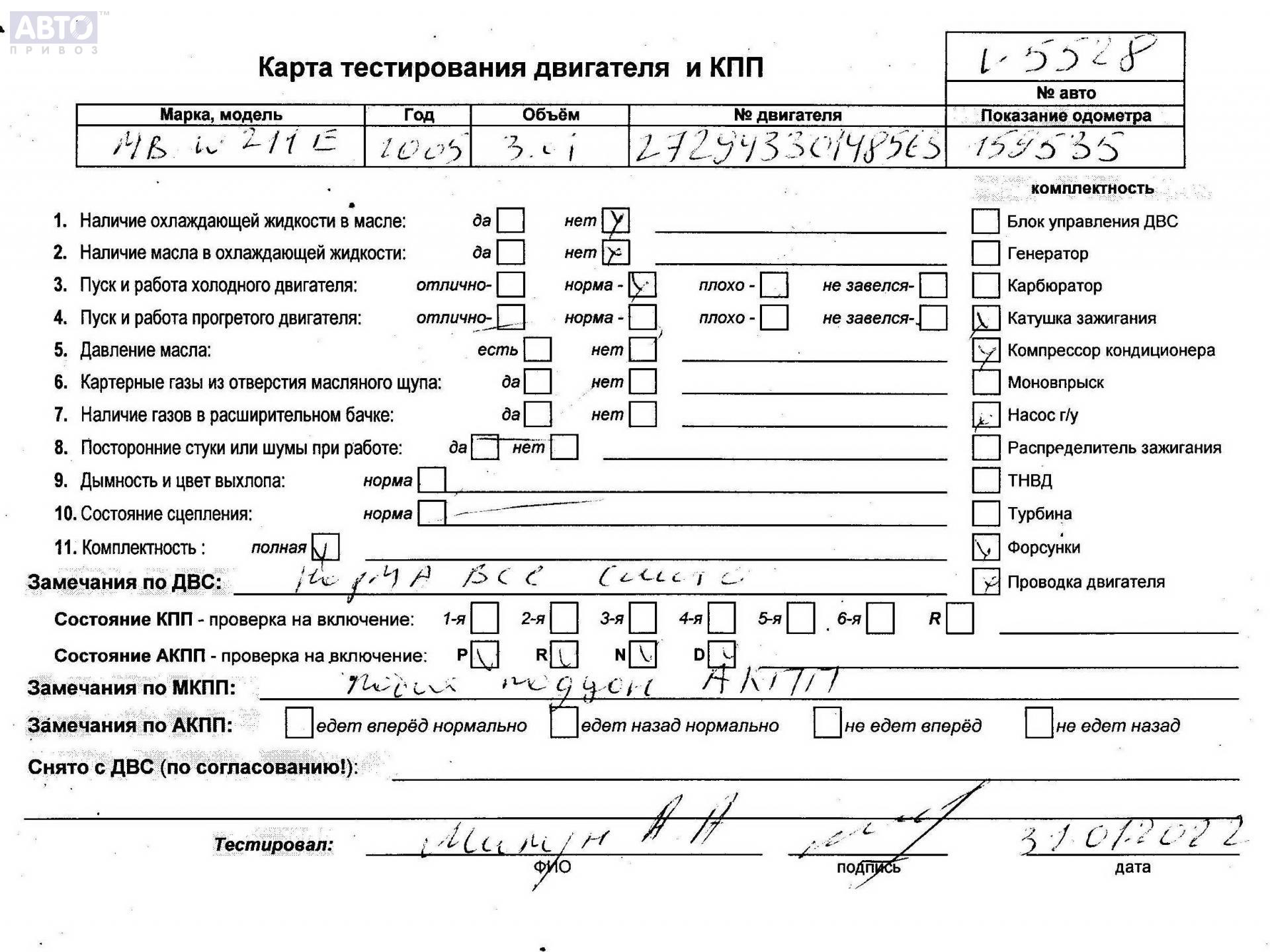 | Марка / Модель / Год: | Mercedes E-Class W211 (2002-2009) 2005 |