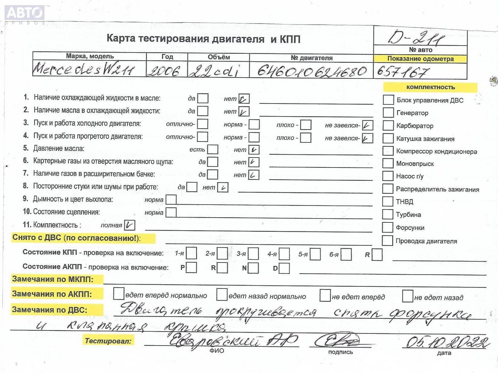 | Марка / Модель / Год: | Mercedes E-Class W211 (2002-2009) 2006 |