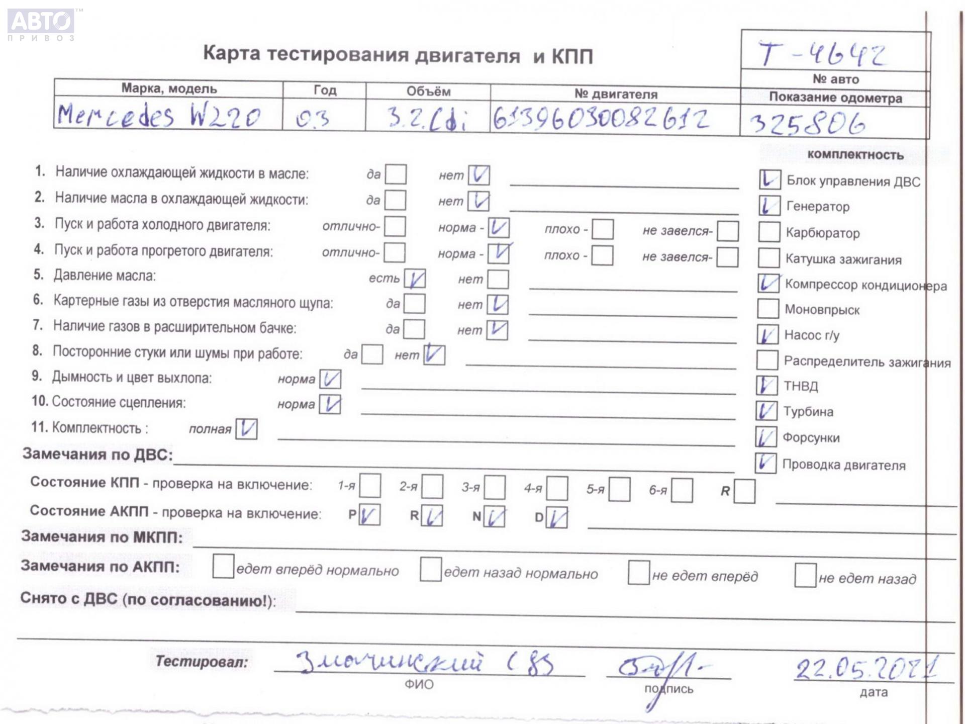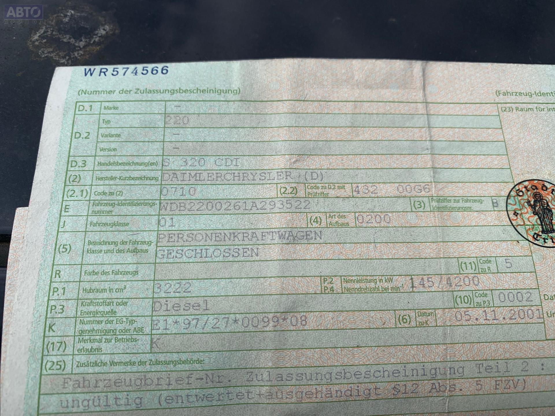 | Марка / Модель / Год: | Mercedes S-Class W220 (1998-2005) 2002 |