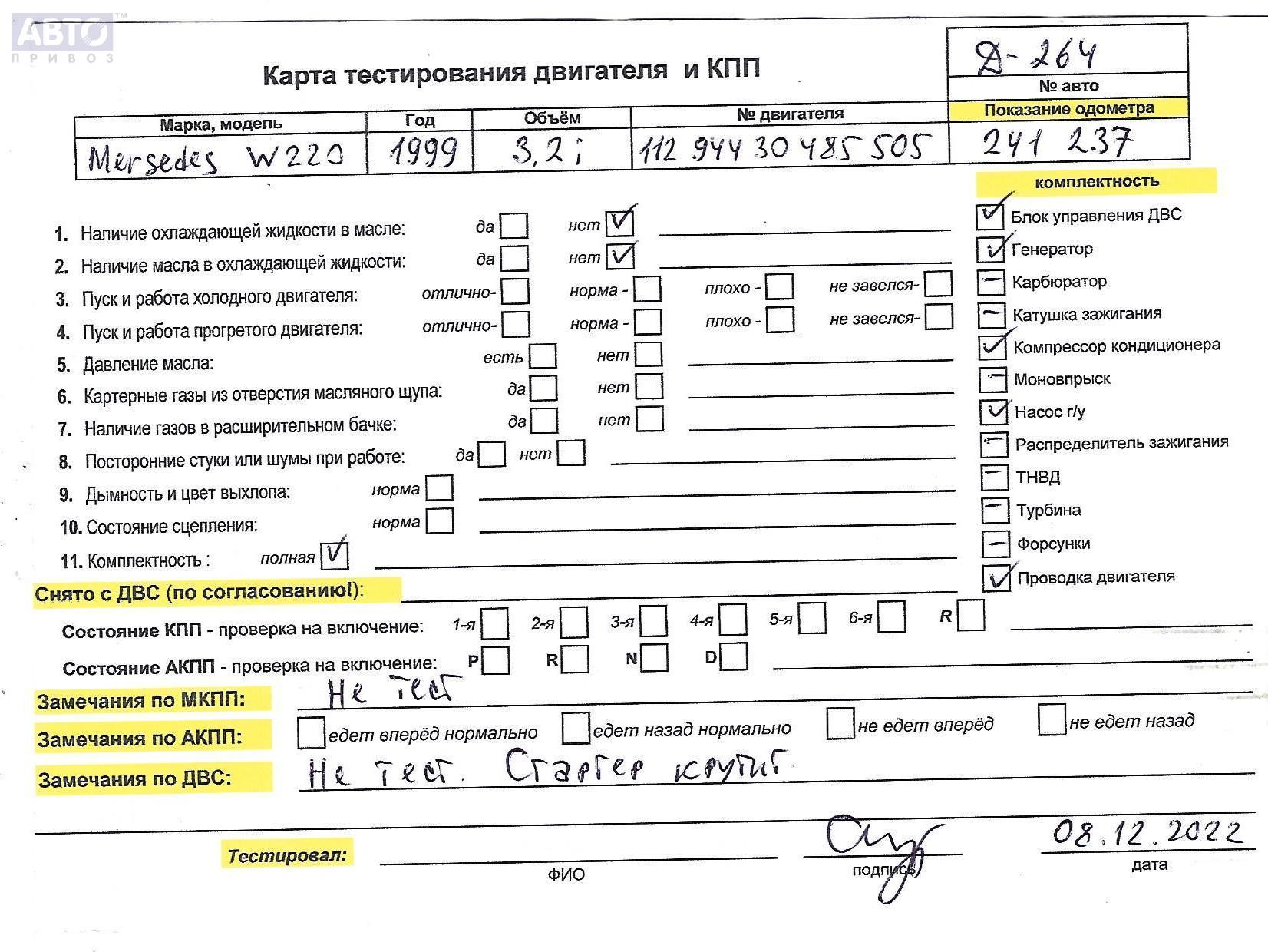 | Марка / Модель / Год: | Mercedes S-Class W220 (1998-2005) 1999 |
