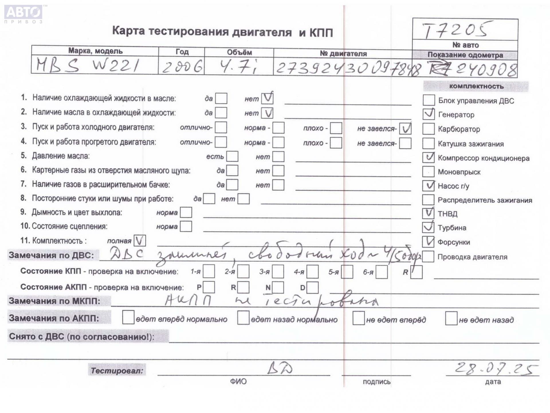| Марка / Модель / Год: | Mercedes S-Class W221 (2005-2013) 2006 |