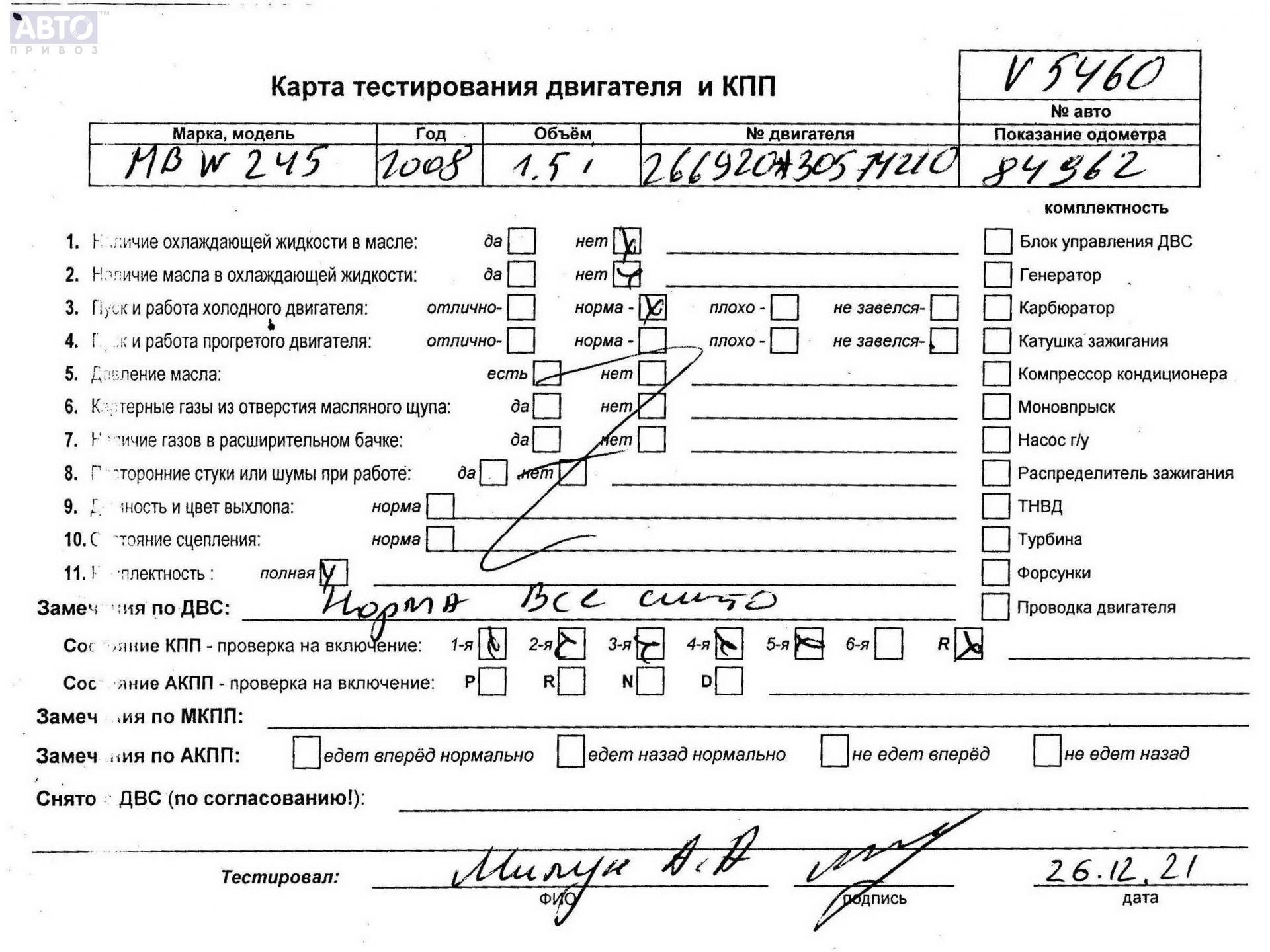 | Марка / Модель / Год: | Mercedes B-Class W245 (2005-2011) 2008 |