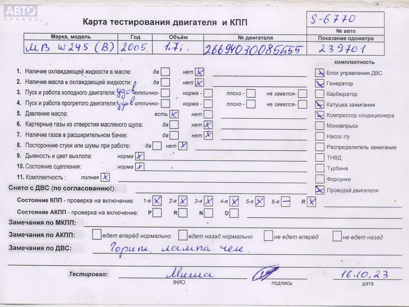 | Марка / Модель / Год: | Mercedes B-Class W245 (2005-2011) 2005 |