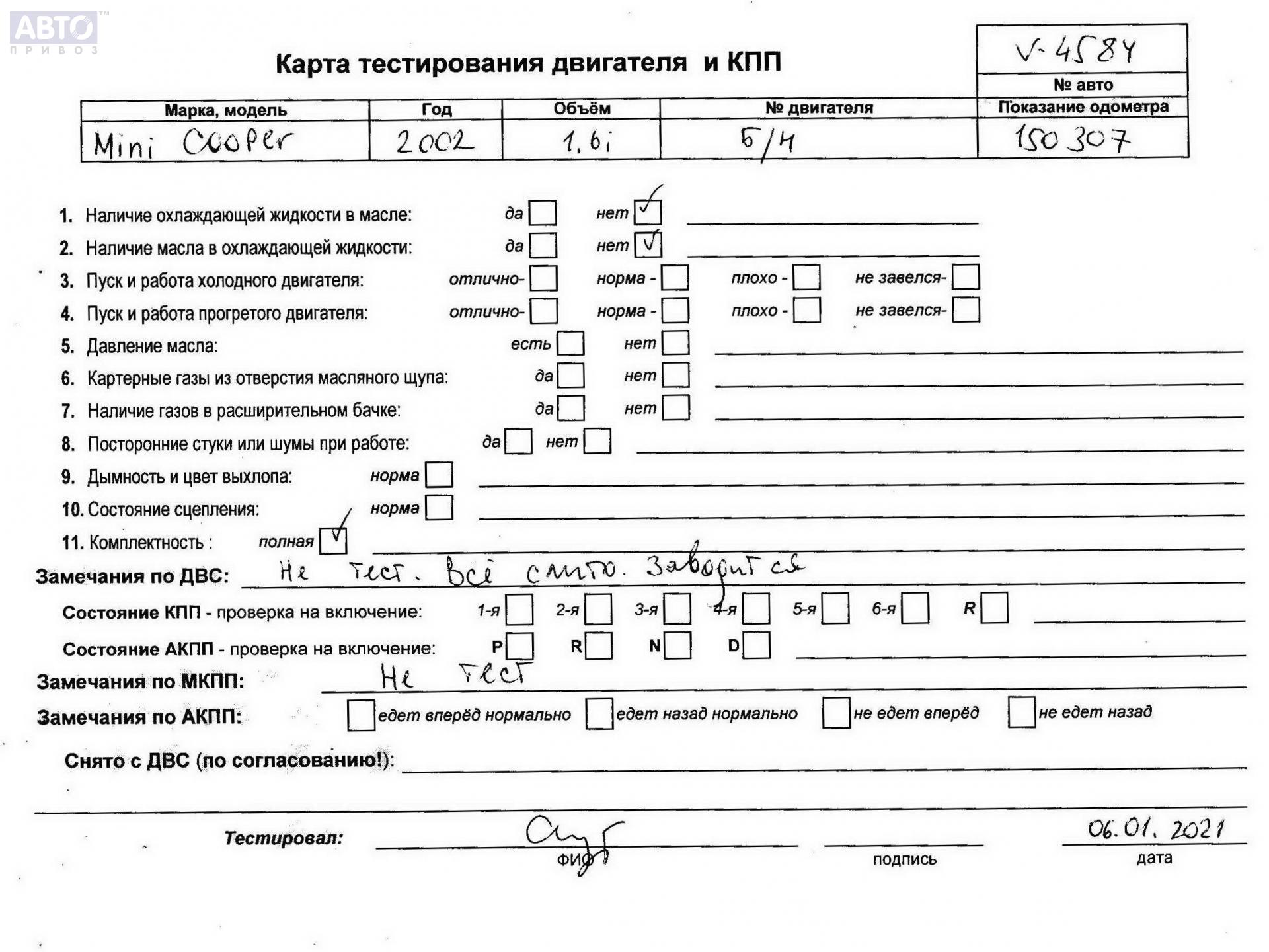 | Марка / Модель / Год: | Mini Cooper R50 2002 |