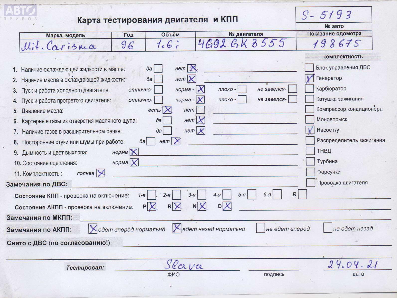 | Марка / Модель / Год: | Mitsubishi Carisma 1996 |