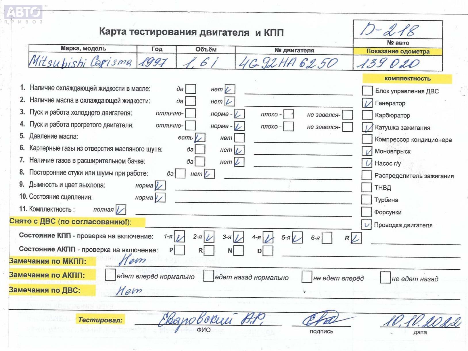 | Марка / Модель / Год: | Mitsubishi Carisma 1997 |